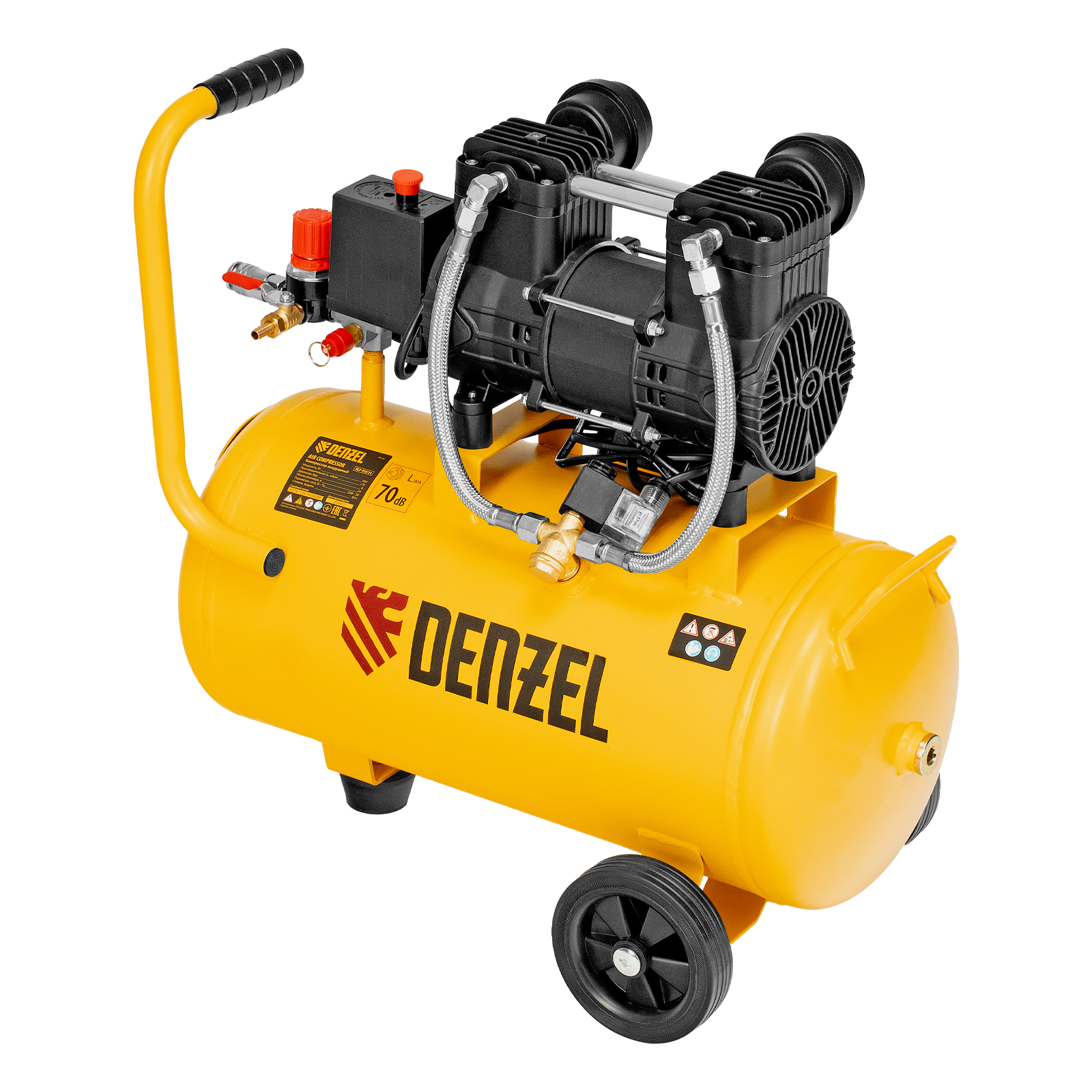 Компрессор безмасл. малошумный DLP-950/24, 950Вт,24 л, 2850 об/мин, 170 л/мин Denzel