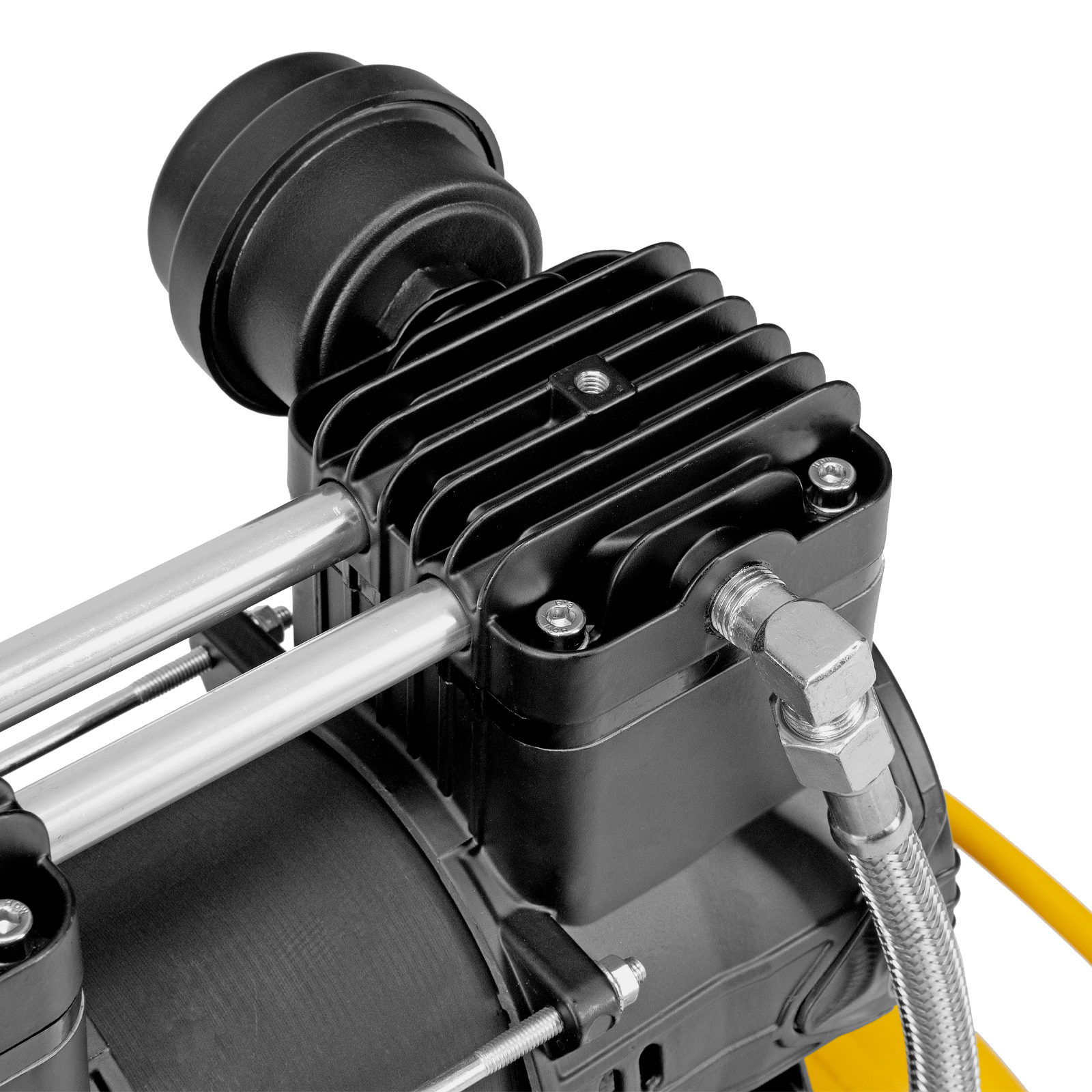 - Автономность — специальное реле останавливает компрессор по достижении максимального рабочего давления и запускает двигатель при падении давления до минимального уровня.