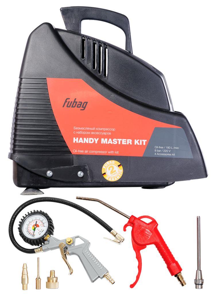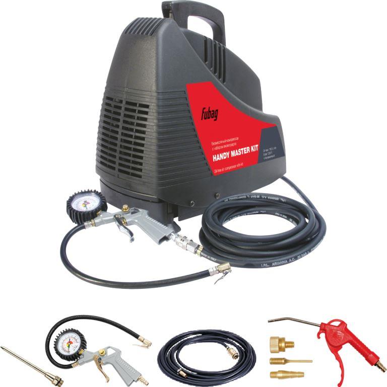 Набор предназначен проведения для различных работ по дому, а также для обслуживания автомобильной и другой техники. В набор с компрессором HANDY MASTER KIT входит: