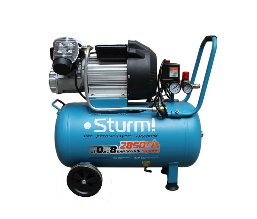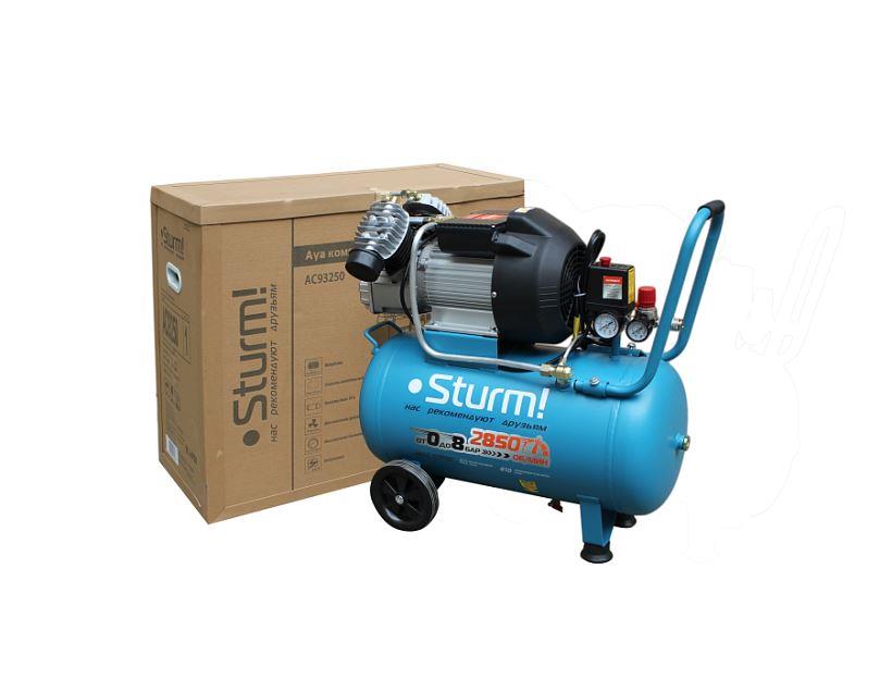 Воздушный компрессор Sturm! AC93250 — эффективность и скорость работы компрессора увеличена за счет использования 2-х цилиндров.