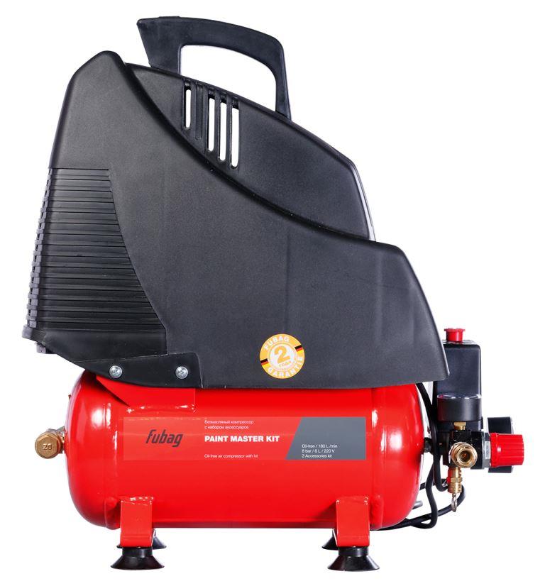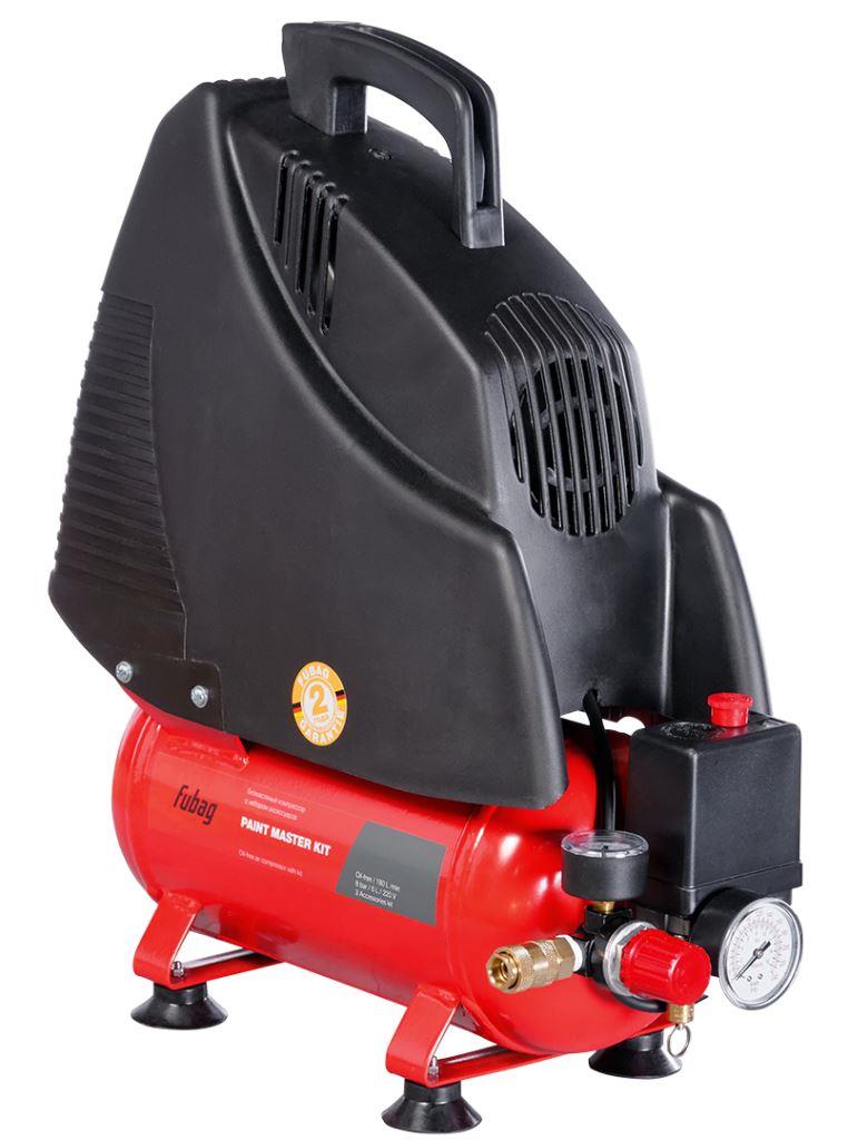 FUBAG PAINT MASTER KIT - компактный и легкий безмасляный компрессор с набором пневмоинструмента, предназначенный для окрашивания различных поверхностей и материалов. Компрессор идеально подходит для работы с краской т.к. выдает чистый воздух без примесей. Компрессор оборудован выходом с разъемом «рапид» с регулятором рабочего давления и манометром.