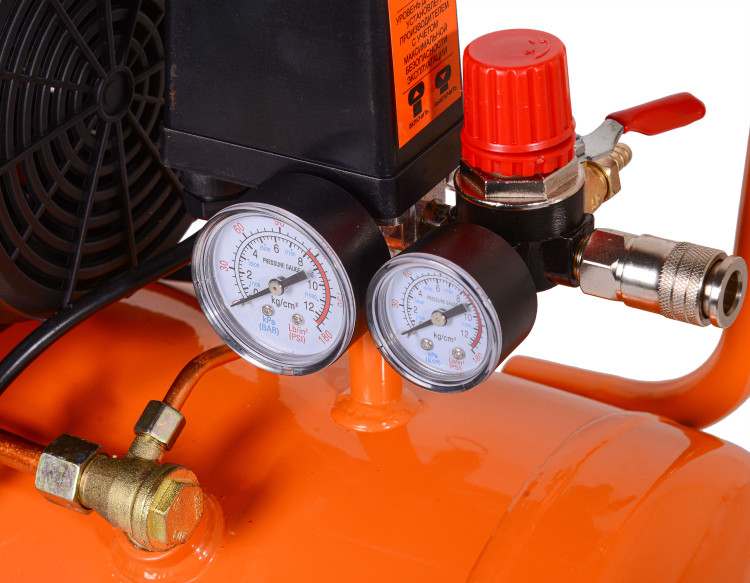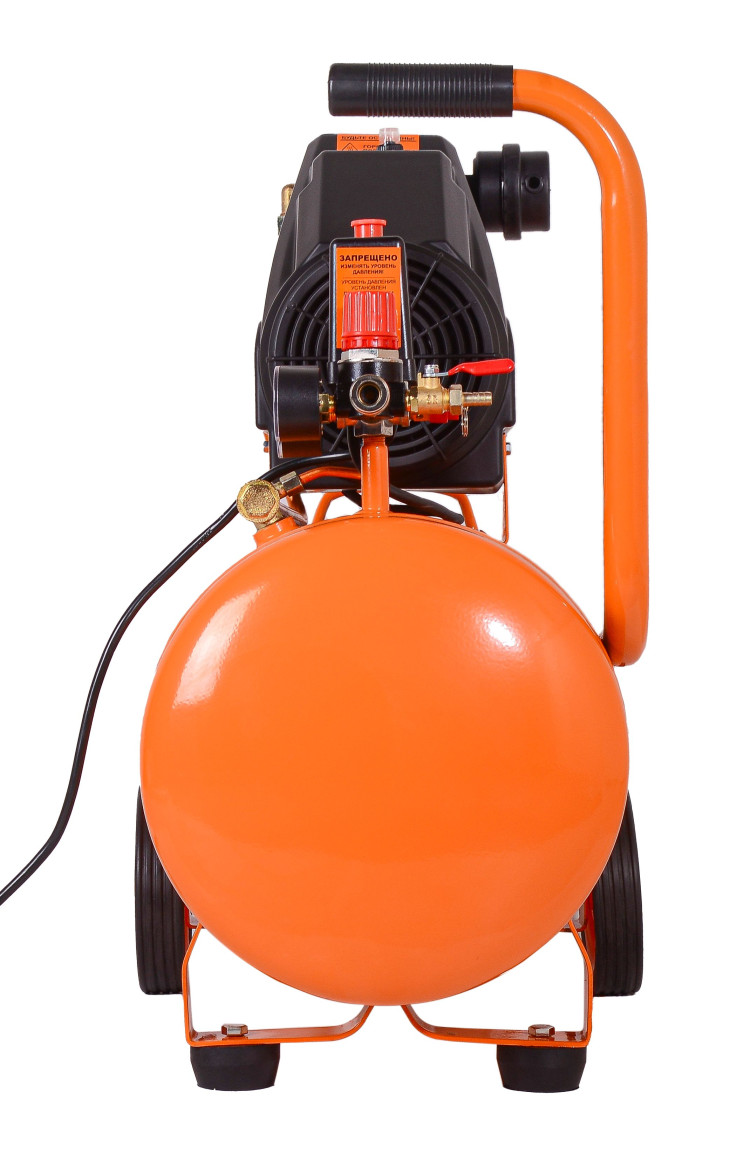 Поршневая модель с прямым приводом способна работать с производительностью до 195 л/мин и подавать сжатый воздух под давлением 8 бар. Преимуществом компрессора является наличие ресивера емкостью 24 л, в котором накапливается сжатый воздух. Благодаря возможности использовать резервный запас, сжатый воздух подается в пневмоинструмент более плавно и равномерно, исключаются скачки давления и перебои в работе, снижается расход электроэнергии. Использование безмасляного агрегата с воздушным фильтром обеспечивает чистоту подаваемого воздуха, без примесей частичек масла. Такой вариант актуален в автомастерских, где производится покраска автомобилей, на пищевых и других предприятиях. В конструкцию также входят реле и регулятор давления, предохранительный, обратный, сливной клапаны, манометр. Устройство имеет термозащиту, антивибрационные накладки на ножках, 2 колеса для удобства перемещения, разъемы EURO-рапид для подключения большинства видов пневматического оборудования. Низкий уровень шума позволяет использовать компрессорный агрегат вблизи жилых домов и в многолюдных местах.