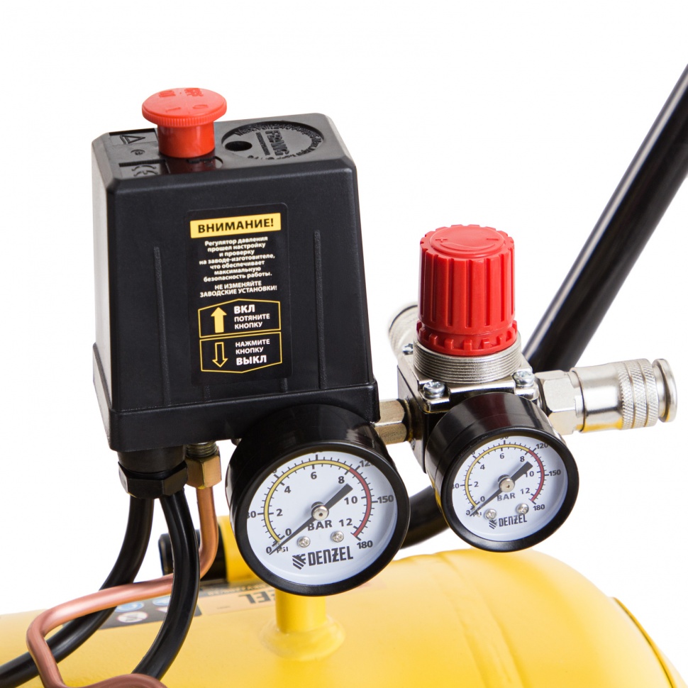 Воздушный компрессор Denzel DKV2200/50 Х-PRO 58083 мощностью 2,2 кВт, с объемом ресивера 50 л сжимает за минуту до 400 л воздуха и предназначен для применения в быту, на станции СТО и строительной площадке. Используется для обеспечения сжатым воздухом пневмоинструмента, например, пневмозубила, пневмогайковерта, пневмомолотка, пневмодрели. 2 евроконнектора позволяют подключить одновременно несколько инструментов для повышения эффективности работы.