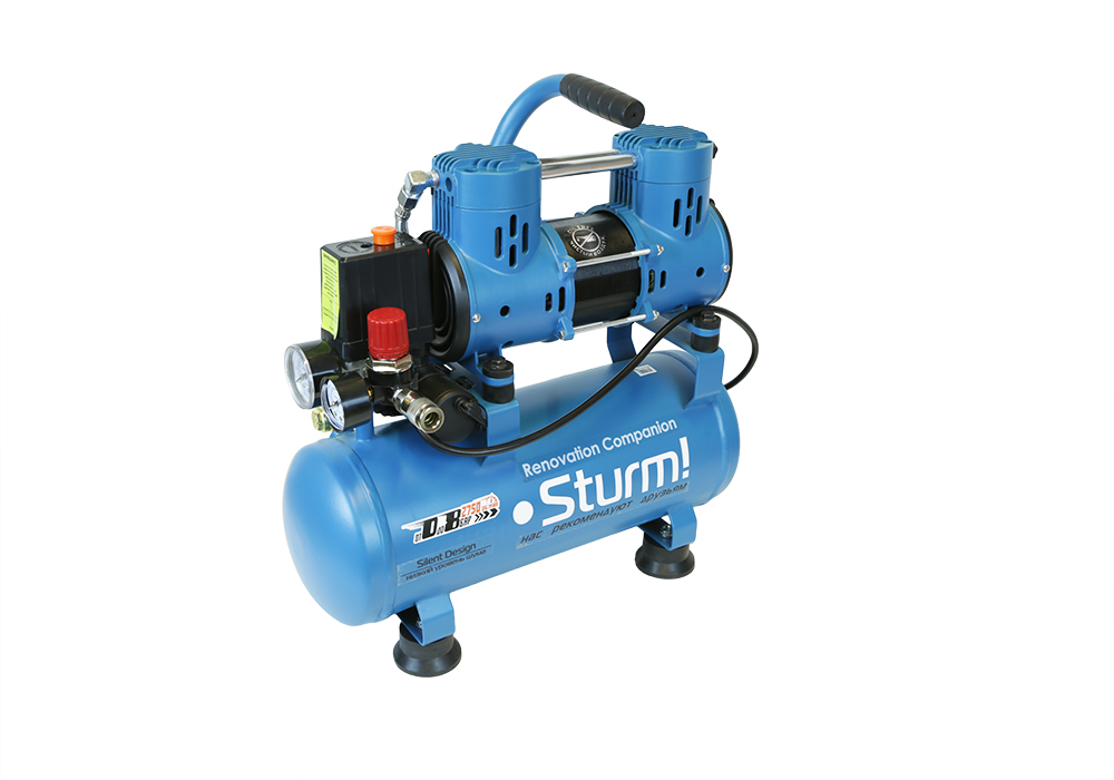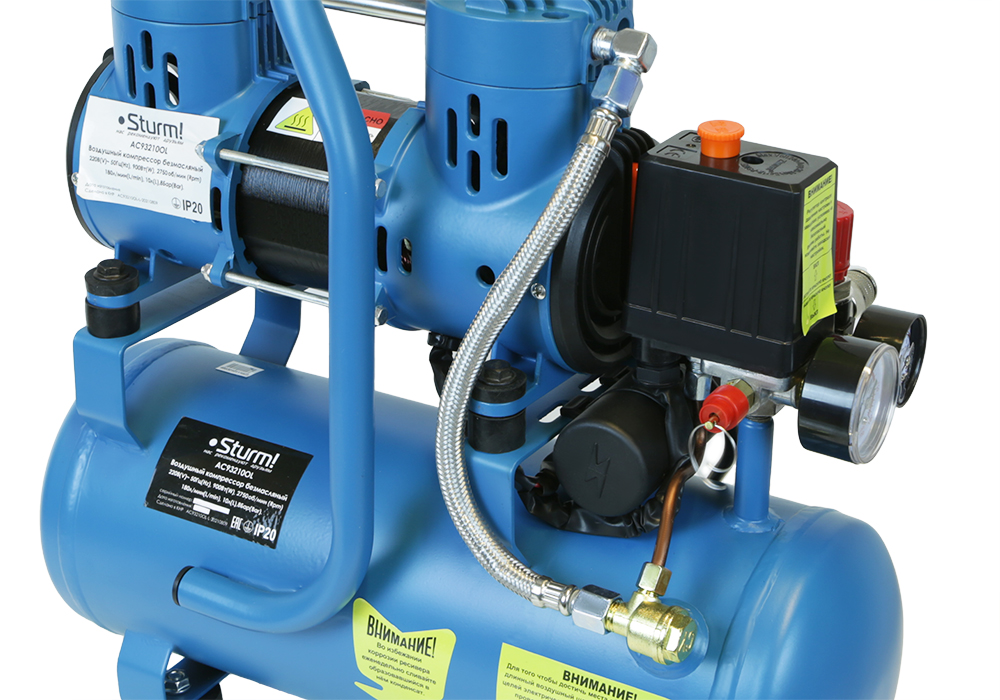 Современный 2-х цилиндровый двигатель c повышенным числом оборотов, скорость в два раза выше стандарта для безмасляных компрессоров. Легко запускается в минусовую температуру благодаря отсутствию в конструкции загустевающего на холоде масла. SilentDesign – низкий уровень шума. Уровень шумового давления компрессора сравним с громкостью обычного человеческого разговора, что в сочетании с компактным 10-ти литровым ресивером делает его идеальным для работы в помещениях и крайне востребованным среди мастеров-отделочников. Реле и регулятор давления с двумя манометрами, на входе и выходе, позволяют создавать давление максимально приближенное к требуемому потребителем, а также наглядно наблюдать и контролировать возможные перепады или недостатки компрессии. Быстросъемный EURO коннектор для легкого и быстрого подключения шланга с пневмо инструментом. Защита от перегрева и Защита от перегрузки предохраняют компрессор от критических состояний. Порошковая покраска ресивера - высокая антикоррозийная стойкость.