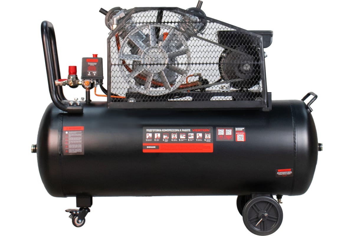 Поршневые ременные компрессоры Verton Air-это профессиональное оборудование с высокой производительностью. Предназначены для выработки сжатого воздуха в большом объеме и длительного интенсивного питания пневмоинструмента. Сферы применения разнообразны - от автосервисных и ремонтных мастерских до строительных площадок и производств. Производительность ременных компрессоров начинается от 410 до 1020 л/мин, установленные ресиверы объёмом от 80 до 300 литров, двигатели от 2,5 до 4 кВт способны нагнетать давление от 10 до 12 Бар. В компрессорах Verton предусмотрено два стандартных выхода с быстросъёмом и два дополнительных выхода через фильтр отстойник с регулятором давления на выходе для получения сжатого воздуха высокого качества.