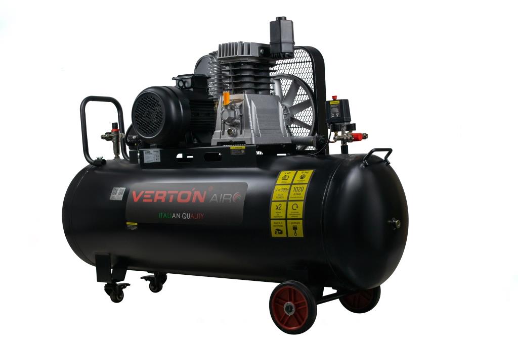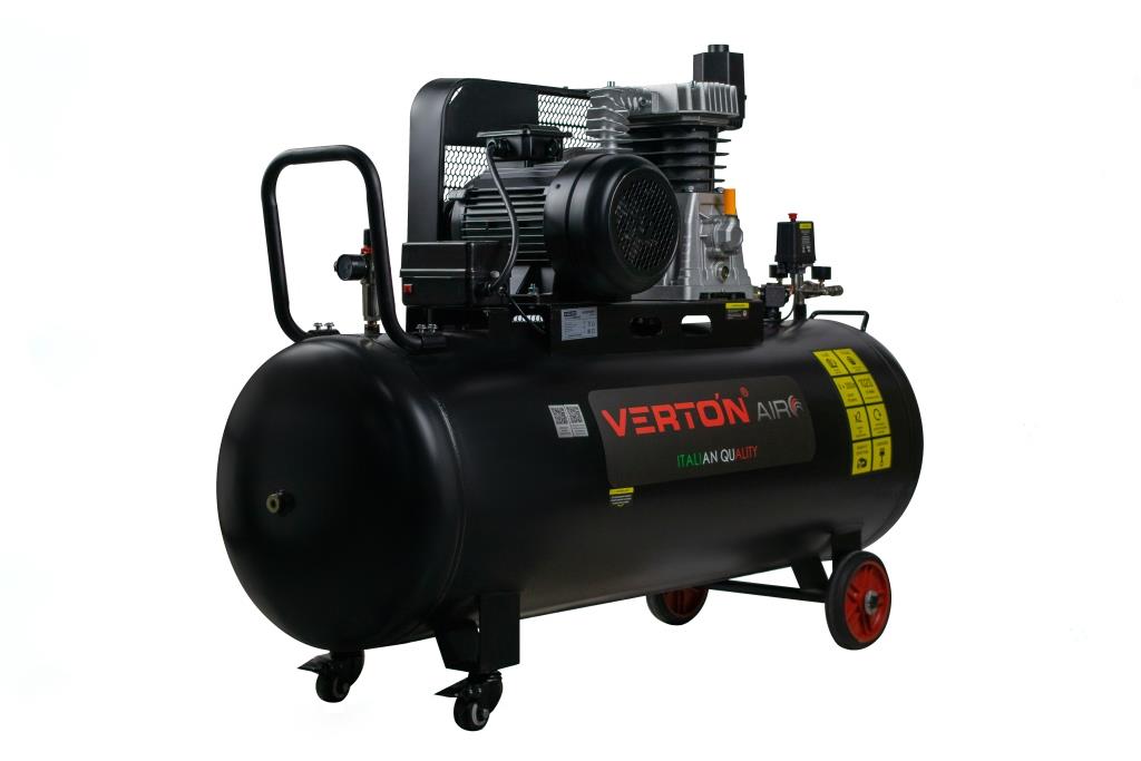 Поршневые ременные компрессоры Verton Air-это профессиональное оборудование с высокой производительностью. Предназначены для выработки сжатого воздуха в большом объеме и длительного интенсивного питания пневмоинструмента. Сферы применения разнообразны - от автосервисных и ремонтных мастерских до строительных площадок и производств. Производительность ременных компрессоров начинается от 410 до 1020 л/мин, установленные ресиверы объёмом от 80 до 300 литров, двигатели от 2,5 до 4 кВт способны нагнетать давление от 10 до 12 Бар. В компрессорах Verton предусмотрено два стандартных выхода с быстросъёмом и два дополнительных выхода через фильтр отстойник с регулятором давления на выходе для получения сжатого воздуха высокого качества.