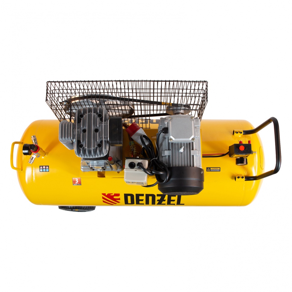 Компрессор Denzel BCI3000-T/200 c мощностью 3 кВт, производительностью 530 л/мин, ресивером на 200 литров и возможностью прямого подключения второго накопителя – все что нужно для профессиональных целей. Двигатель с медной обмоткой не боится высоких нагрузок, а потому может уверенно использоваться целый день на фабриках, автосервисах, в мастерских и при создании магистралей воздухоподачи.