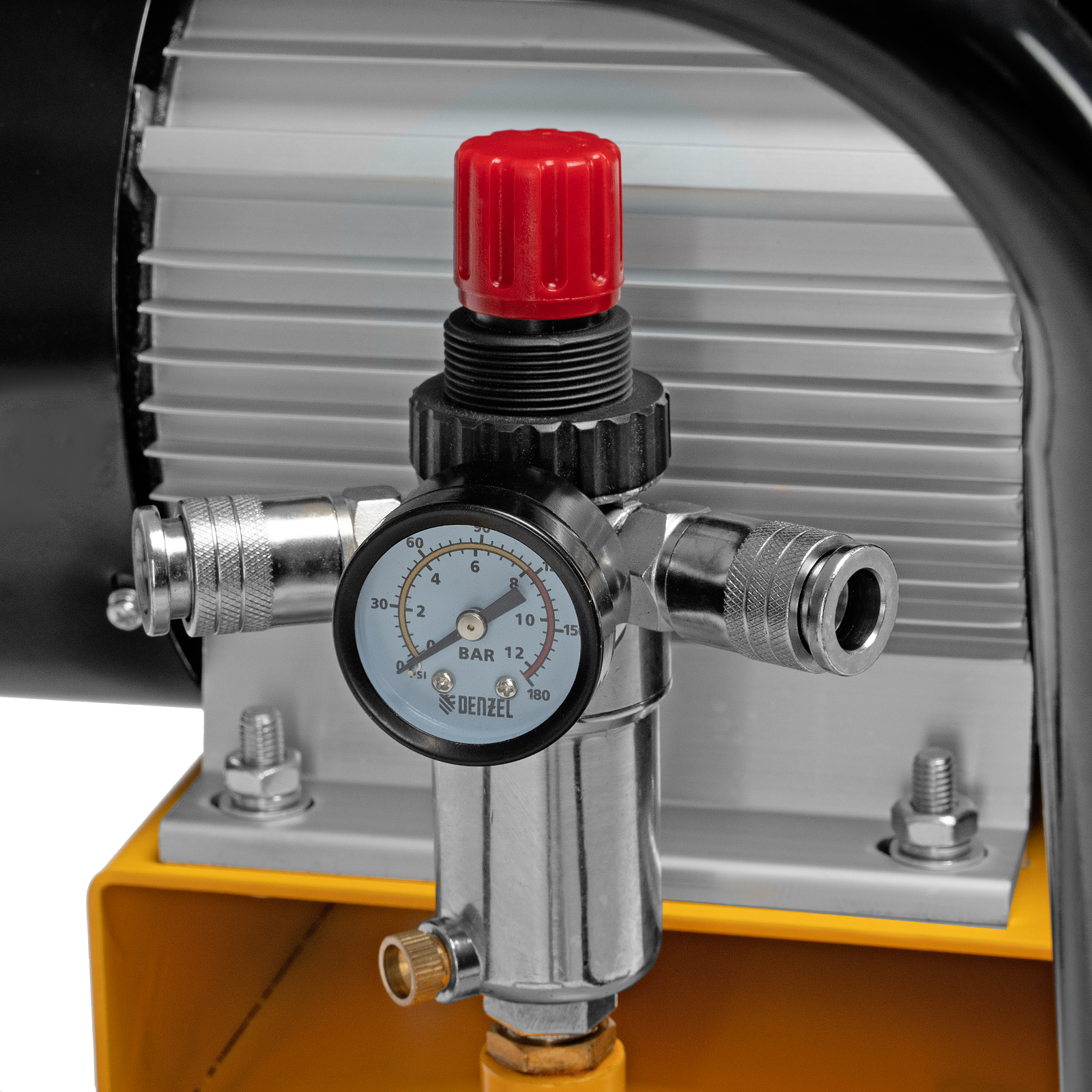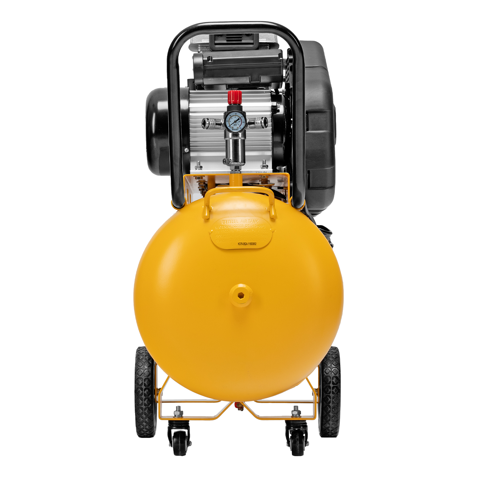 - Удобный контроль давления в ресивере и пневмомагистрали — компрессор оснащен двумя механическими манометрами.