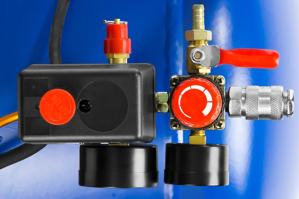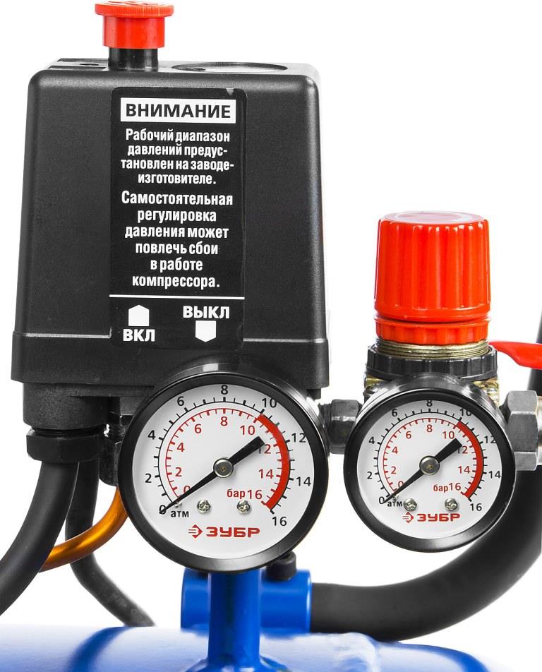 - Контроль давления в ресивере и на выходе при помощи двух манометров
