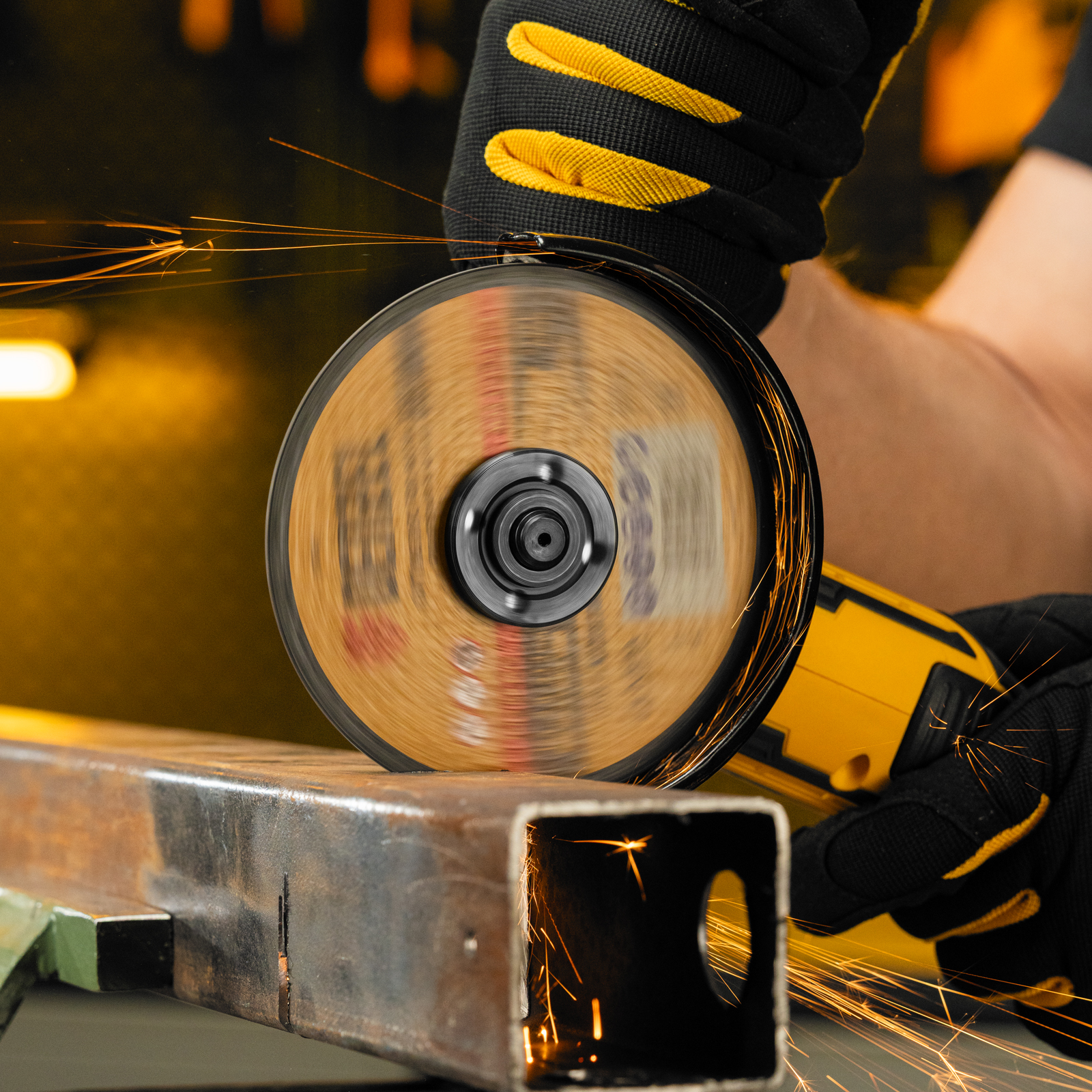 - Повышенная производительность — высокотвердый абразив из электрокорунда белого и электрокорунда нормального с зернистостью 60 и специальными добавками позволяет быстро и эффективно резать прочные материалы.