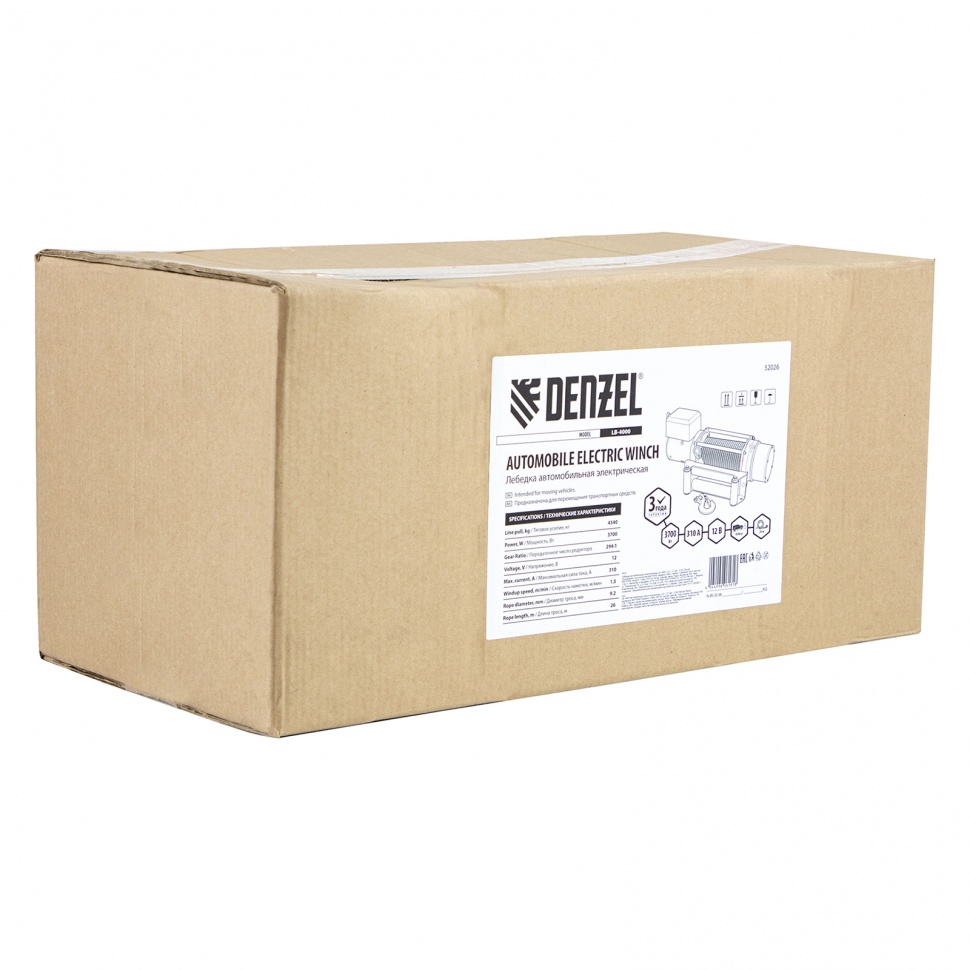 Лебедка Denzel LB-4000 52026 мощностью 3,7 кВт и скоростью намотки троса 1,5 м/мин используется для перемещения грузов в горизонтальной плоскости, а также эвакуации и вытягивания из водоемов и кюветов транспортных средств весом до 4,5 т, например, квадроциклов, легких внедорожников, сельхозтехники. Лебедка устанавливается непосредственно на бампере, раме или кузове, проста в применении и не требует специальной подготовки.