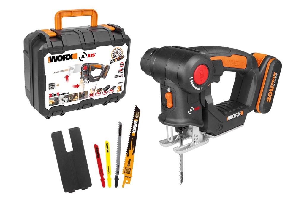 WORX WX550.1 это универсальное комбинированное устройство совмещающие в себе 2 инструмента Лобзик и Сабельную пилу. Для переключения режима работы требуется нажать 1 кнопу и заменить оснаску, используйте 1 инструмент для множества задач, экономьте вместе с WORX. Инструмент оснащен 2 ступенями маятникового хода для точной настройки под конкретный тип материала. Полотна легко меняются без применения инструмента. Подошва выполнена из металла для увелечения срока службы. Лобзик-сабельная пила оснащена светодиодной подсветкой рабочей зоны. Поставляется в комплекте с аккумулятором WORX POWERSHARE® 20В 2 А*ч, которыq взаимозаменяем с другими инструментами и садовой техникой WORX. Аккумуляторы WORX оснащены электронной платой управления с защитой от глубокого разряда и перегрева, что продлевает срок службы и увеличивает время работы. Данная модель поставляется в кейсе с зарядным устройством с функции быстрой зарядки за 1 час. Технические характеристикиТип двигателя: Щеточный. Напряжение аккумулятора: 20 В. Емкость аккумулятора: 2 А*ч. Тип аккумулятора: Li-lon. Количество аккумуляторов в комплекте: 1 Число ходов на холостом ходу: 3000 ход/мин Мах толщина пропила дерева (лобзик/сабельная пила): 50/100 ММ Мах толщина пропила металла (лобзик/сабельная пила): 4/76 мм Наличие быстр. зам. пилки есть Литая подошва есть Наличие подсветки: есть. Вес устройства без АКБ: 1,5 кг. Комплектация: Лобзик-сабельная пила WORX WX550.1; Аккумулятор Li-Ion емкостью 2 А*ч; Зарядное устройство WORX 20 В 2 A WA3880 с функцией быстрой зарядки; Набор пилок (4шт); Кейс; |