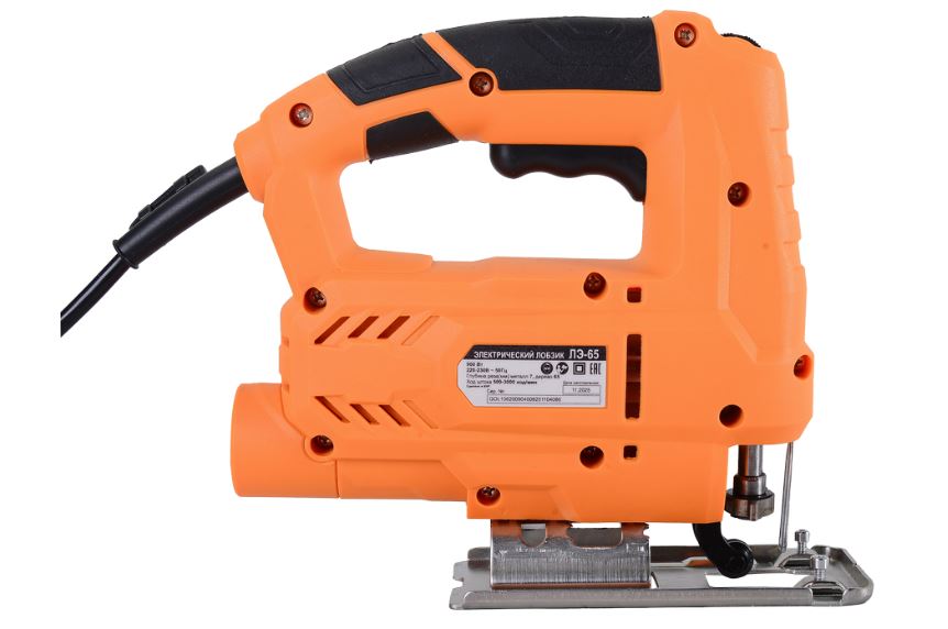 Лвигатель мощностью 650 Вт обеспечивает эффективное функционирование прибора при работе с разными материалами, включая твердую древесину и металл. Лобзик способен прорезать металлические листы толщиной до 7 мм. Глубокий рез в древесине до 65 мм позволяет обрабатывать толстые доски и плиты. Регулируемый диапазон частоты хода штока 500-3000 ход/мин предоставляет возможность адаптировать инструмент под конкретные задачи.