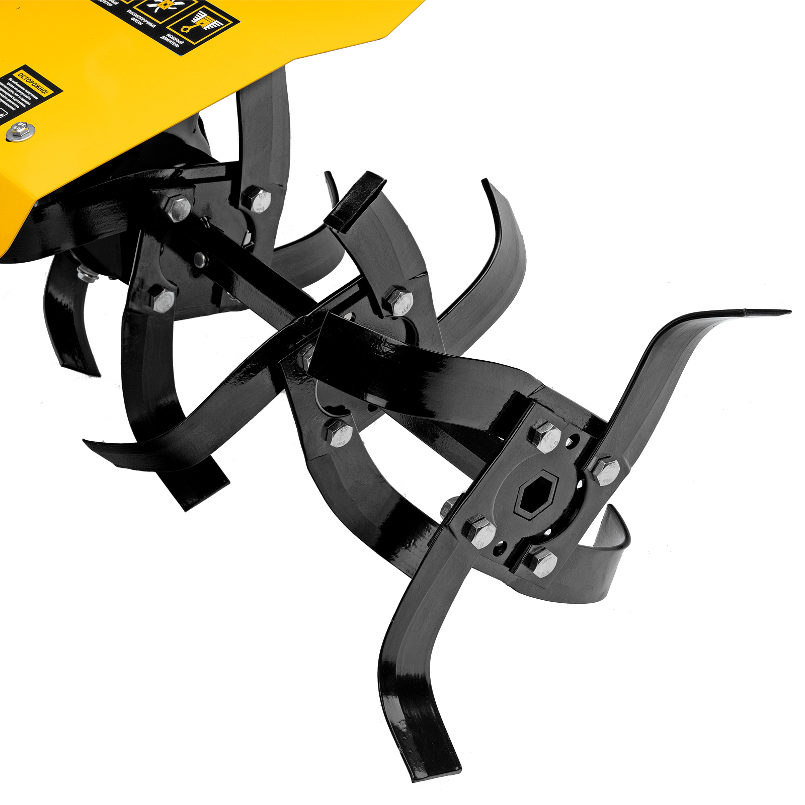 - Высокая прочность — 6 рядов фрез из закаленной стали не деформируются при высоких нагрузках, подходят для обработки любого грунта и не требуют повторной заточки.