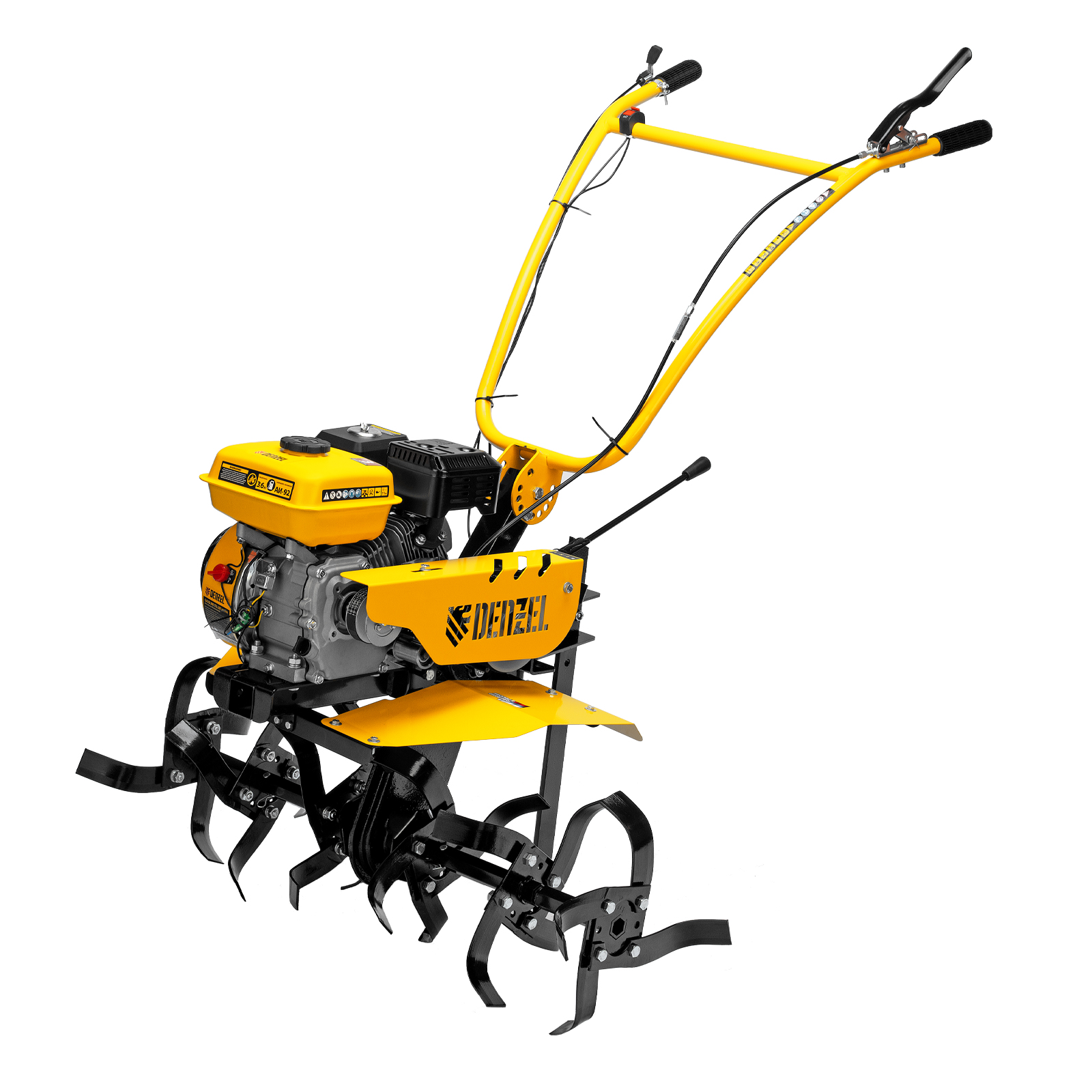 Мотоблок Denzel DPT-270SB 56452 мощностью 7 л.с., с ременным механизмом сцепления, оснащен фрезами 3 х 4, шкивом отбора мощности (ШОМ) и коробкой передач 2В/1Н. Предназначен для выполнения земляных работ: рыхления, вспахивания, прополки и т. д. Успешно справляется даже с плотной, глинистой почвой. Разборные фрезы с дополнительными секциями позволяют регулировать ширину обработки до 1 м.