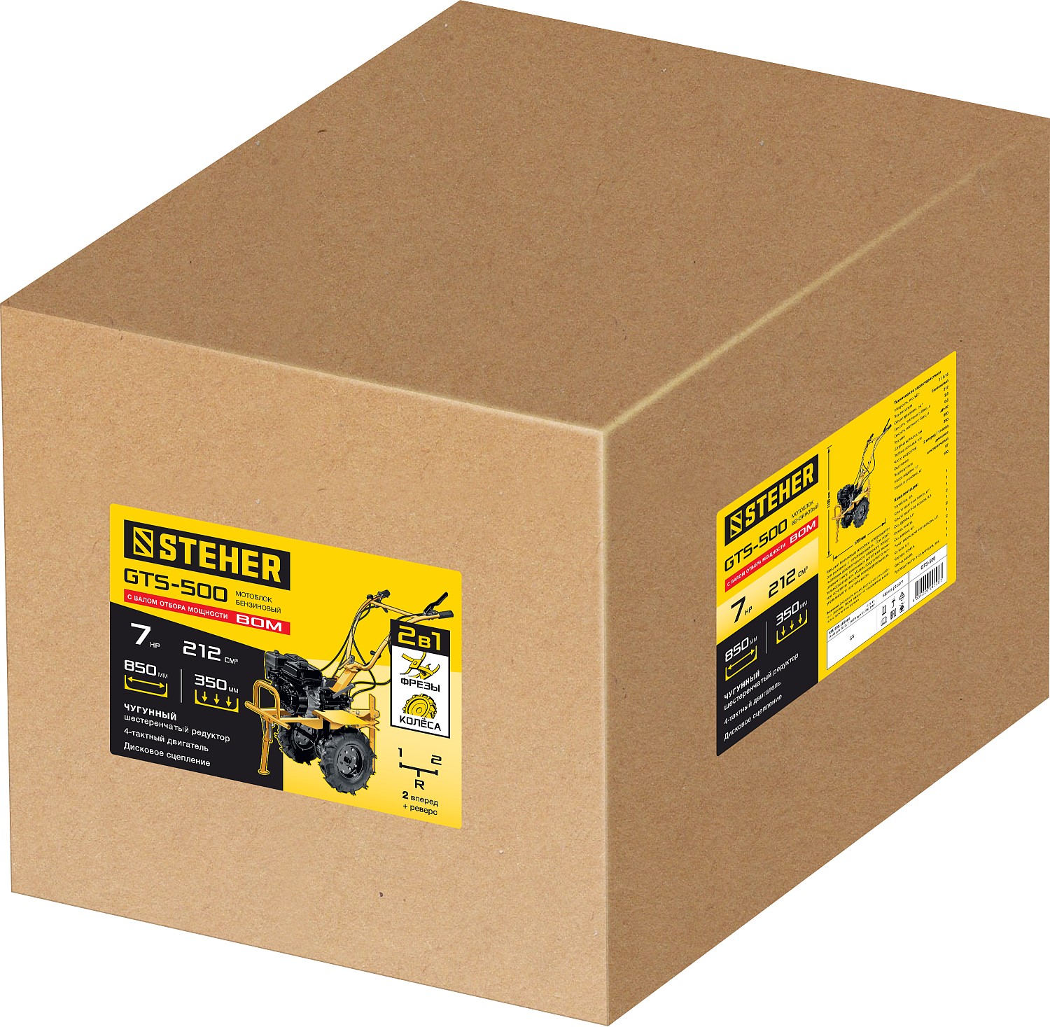 - 2 скорости вперед (понижающая, основная) и 1 назад позволяют комфортно работать на любых типах почвы