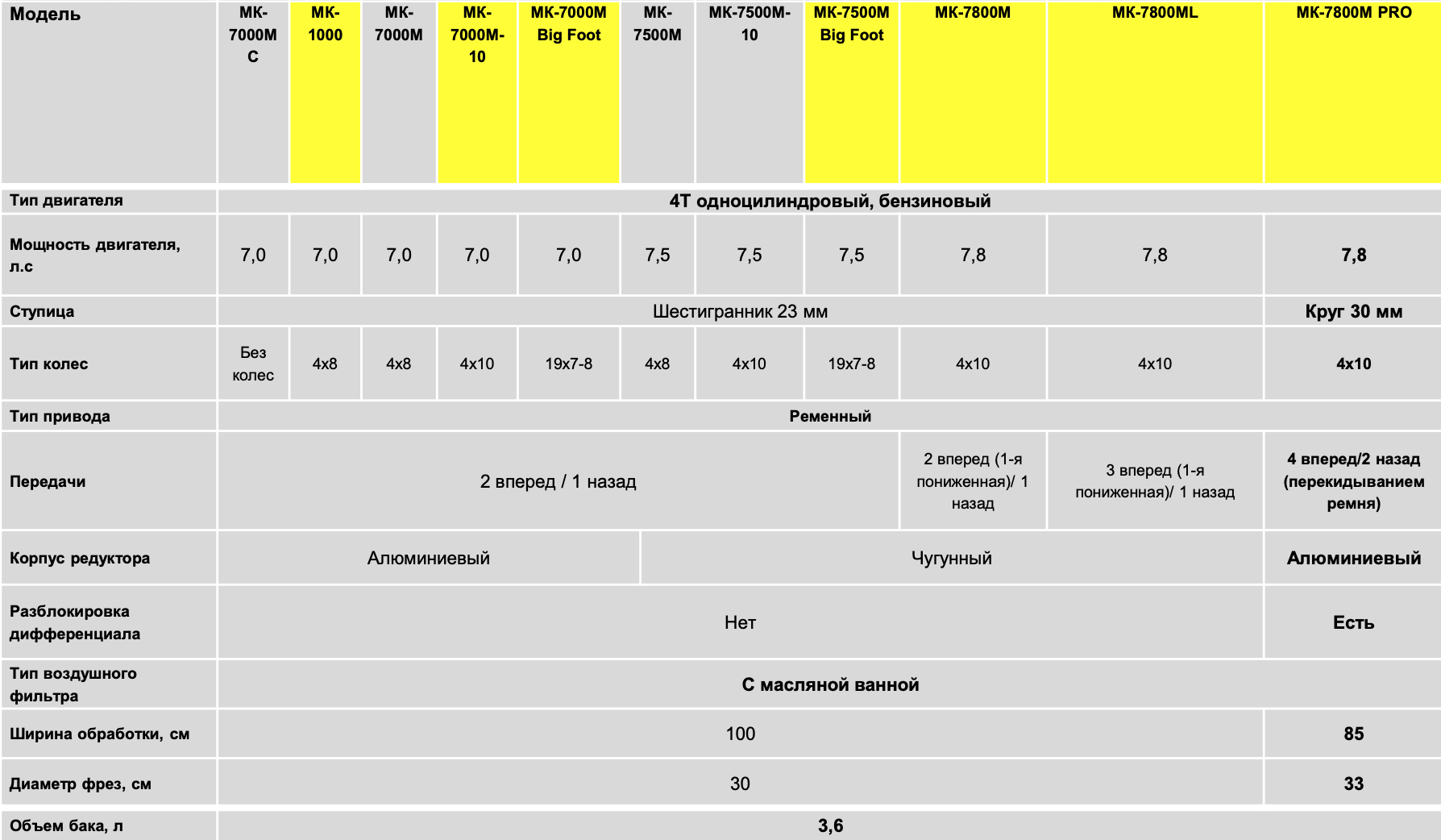 - Возможность выбрать скорость (для тяжелых и средних культиваторов) и две скорости работы "вперед и назад" для всей линейки культиваторов.