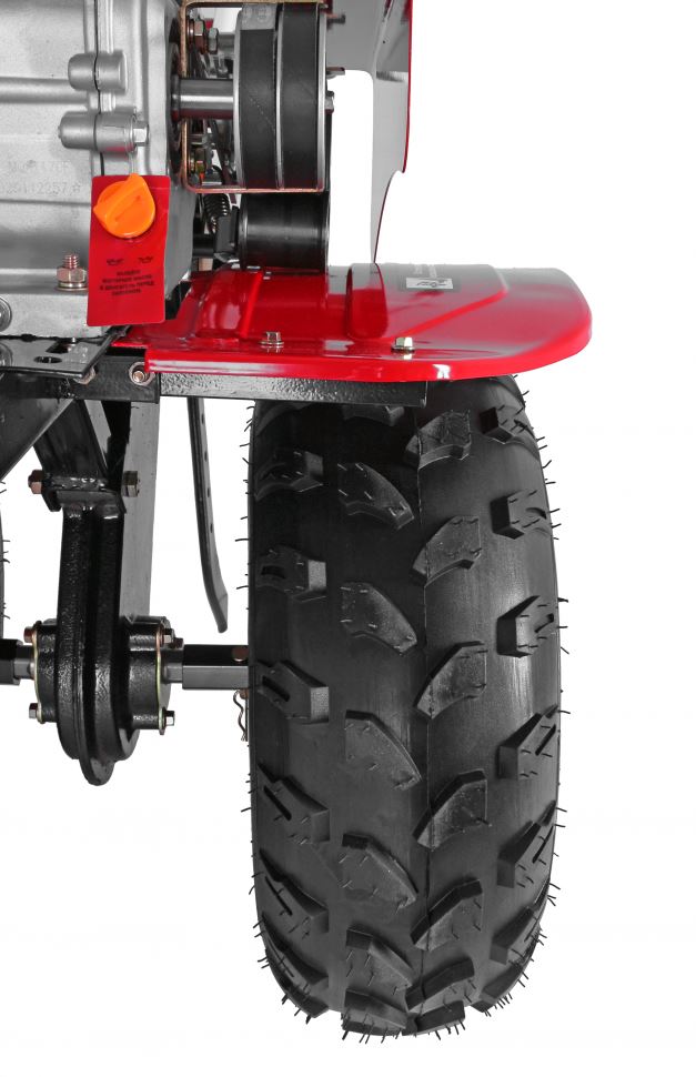 Агрегат отличается простотой сборки и наличием сошника для удобства хранения. Для удобства использования все переключатели находятся на ручках агрегата. Крылья защищают оператора от попадания земли во время работы.