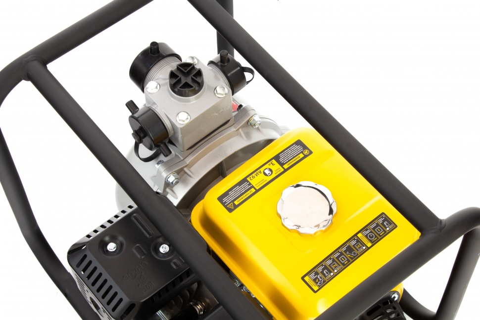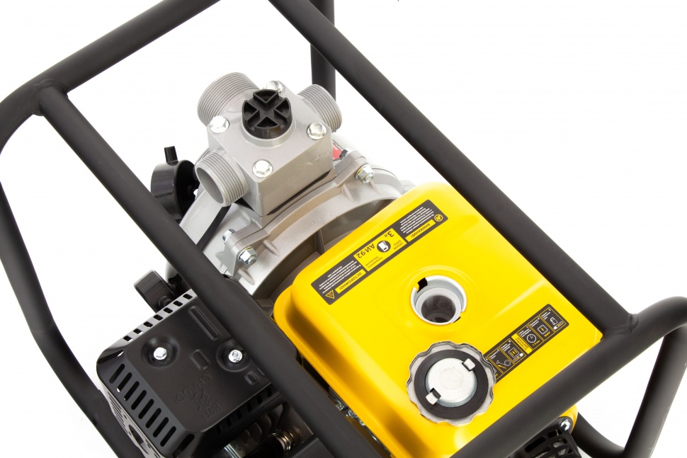 - Надежность — мощная стальная рама защищает мотопомпу от повреждений.