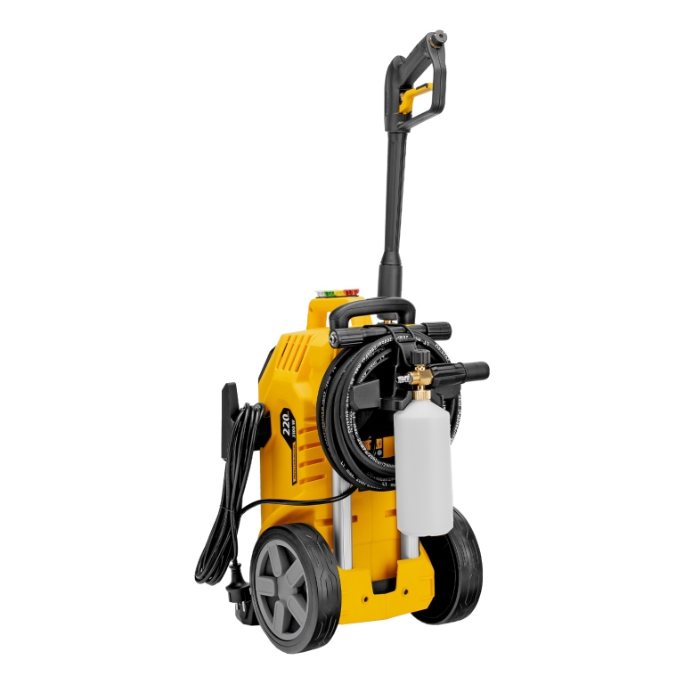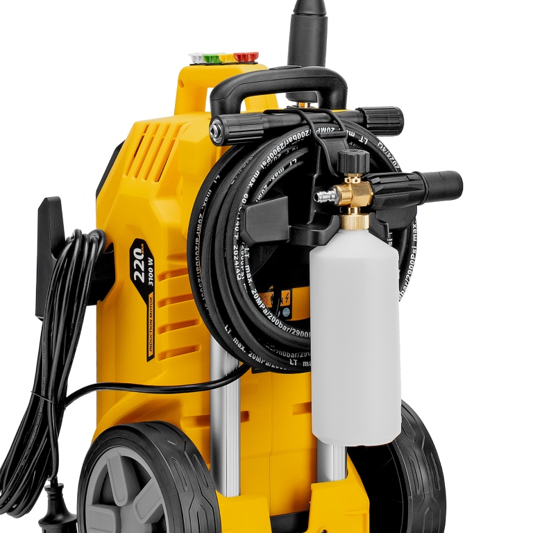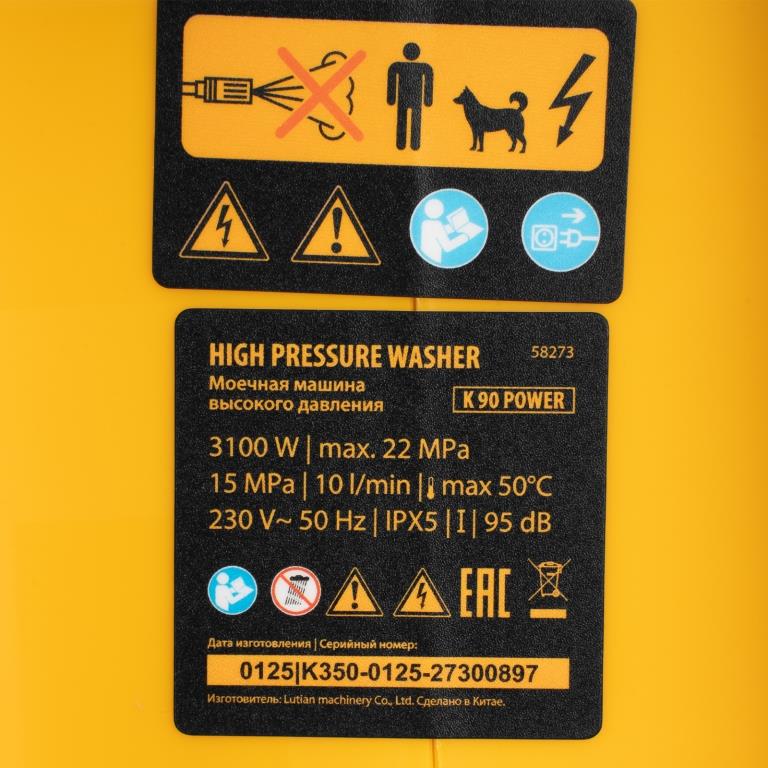 Моечная машина высокого давления Denzel K 90 Power 58273 мощностью 3100 Вт и производительностью 600 л/ч, с асинхронным двигателем, обеспечивает подачу воды под давлением до 220 бар. Позволяет при помощи струи воды отмыть фасад дома, дорожку, тротуар, садовую мебель, технику и инструменты, автомобиль, окна и т.д.