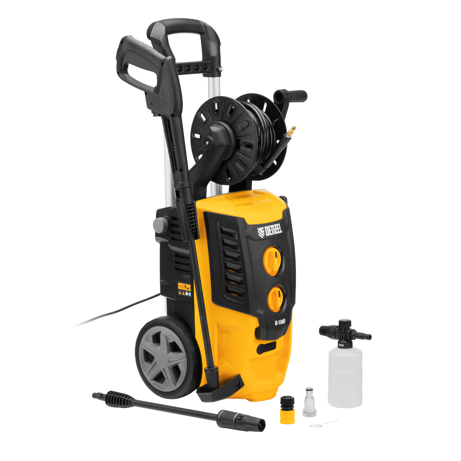 Моечная машина высокого давления Denzel R-180D 58239 с барабаном, мощностью 2200 Вт и производительностью 380 л/ч подает струю воды под давлением 180 бар и используется для очищения поверхностей. Позволяет быстро привести в порядок садовые дорожки, удалить пыль и грязь с фасада здания, автомобиля, велосипеда или мотоцикла, отмыть садовый инвентарь. Моечная машина подключается к водопроводу, а при его отсутствии может забирать воду из любого резервуара, работая в режиме самовсасывания. Устройство пригодится для поддержания порядка на загородном участке.