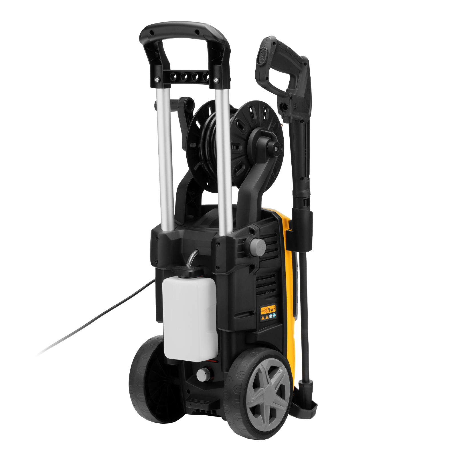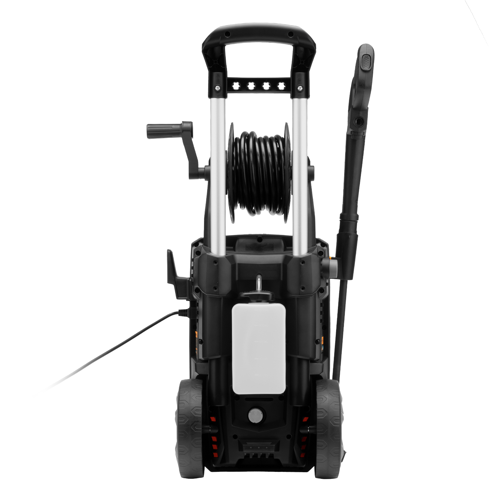 - Функциональность — машина оборудована специальной катушкой для удобного вытягивания шланга на необходимую длину.