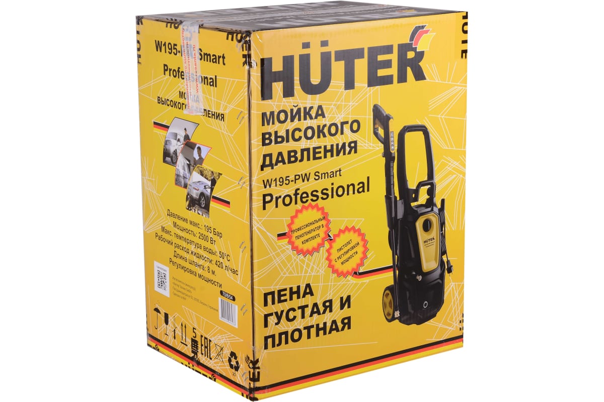 Мощная, профессиональная, простая в сборке и подключении, комфортная в использовании модель Huter W195-PW SMART PROFESSIONAL будет полезна автомобилистам, дачникам, фермерам и всем, кто хочет поддерживать в чистоте и порядке свою технику.