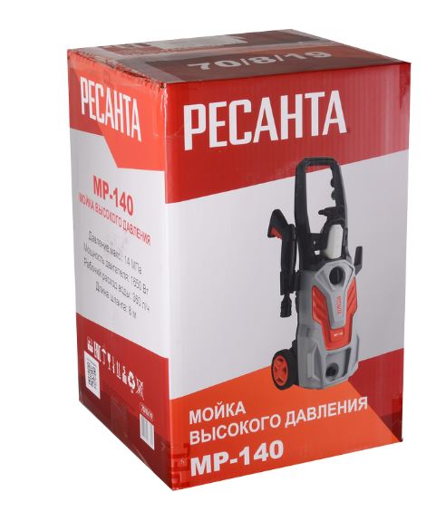 МР-140 Ресанта оснащена синхронным электродвигателем мощностью 1650 Вт. МР-140 - это базовая модель моек Ресанта с невысокой мощностью и рабочим давлением 90 бар. Она компактная и мобильная и хорошо подойдёт для решения простых бытовых задач по очистке поверхностей.