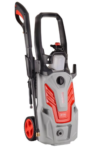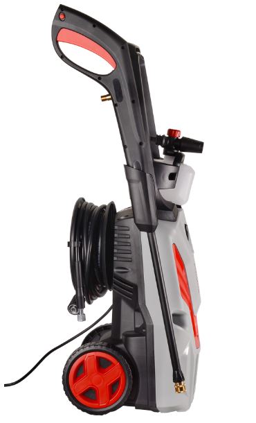 Пистолет-распылитель имеют защиту от случайного пуска. Помпа выполнена из алюминия, что повышает её надёжность и защищает от коррозии. Модель оснащена ручкой и колесами для достижения мобильности моющего оборудования. Удлинённый шланг высокого давления (8 метров) позволит минимально передвигать аппарат в процессе работы. Хранение шланга обеспечивается наличием барабана для намотки с удобной ручкой, а также дополнительным держателем провода, чтобы в процессе мойки электропровод не запутывался.