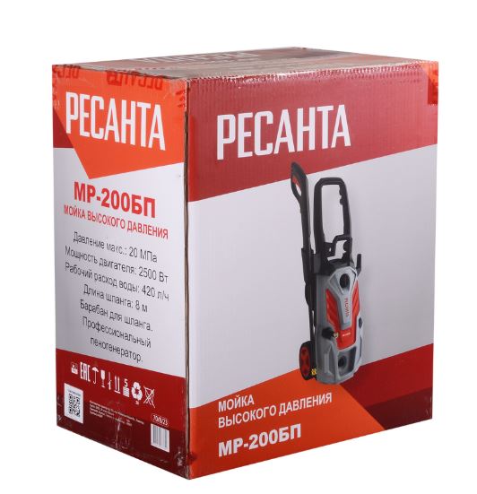 Мини-мойка Ресанта МР-200БП сделана на основе синхронного двигателя с мощностью 2500 ВТ. Мойка поддерживает рабочее давление в 13 МПа, максимальное давление - 20 МПа. Расход воды – 420 литров в час.