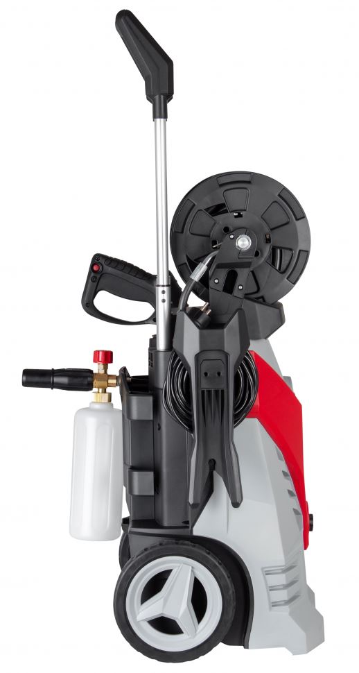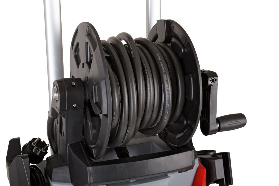 Модель имеет активный барабан для намотки шланга. Подключение происходит через барабан.