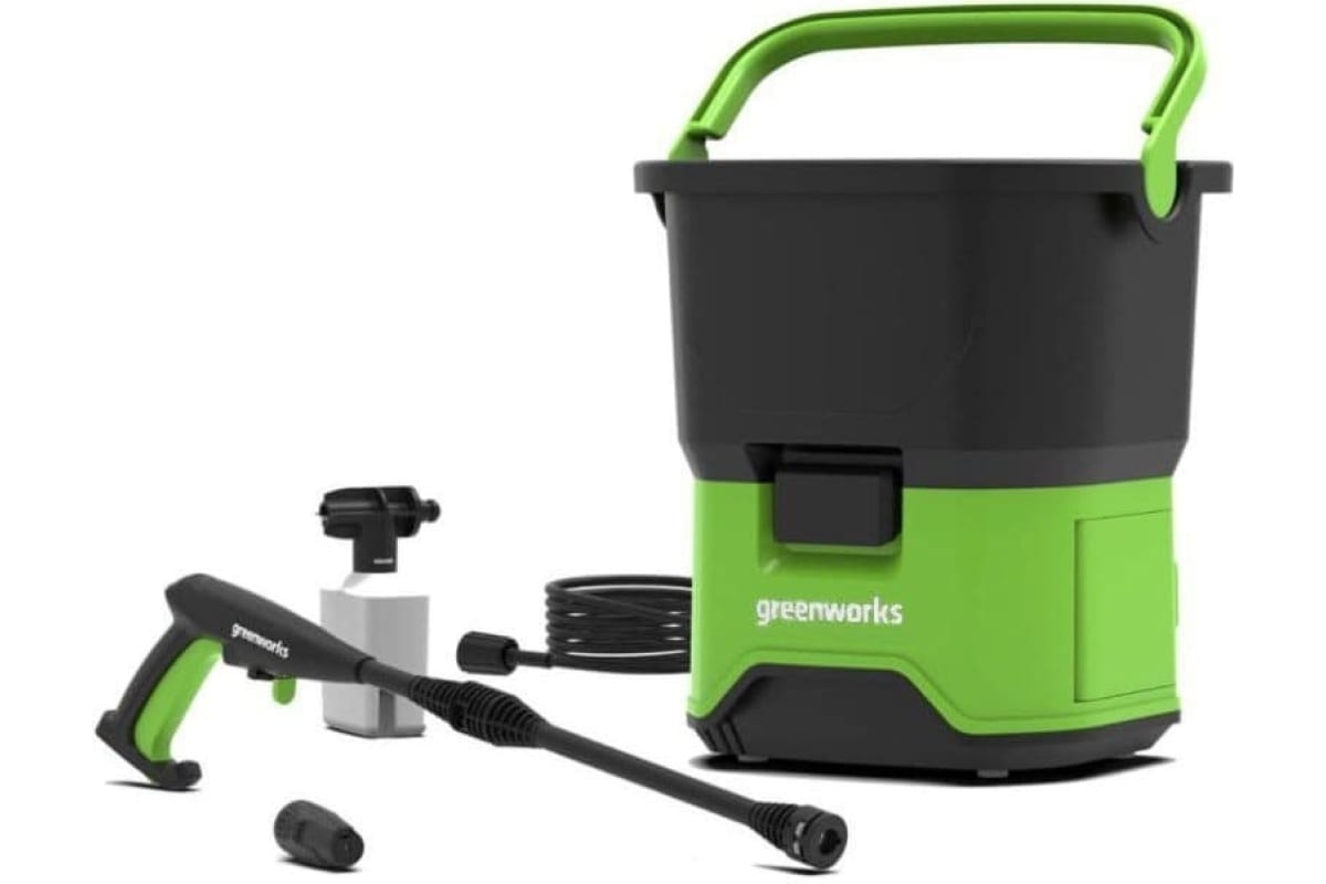 Аккумуляторная мойка высокого давления GreenWorks GDC60 60V 5104607 предназначена для мытья велосипедов, машин, стен, окон и садовых дорожек.