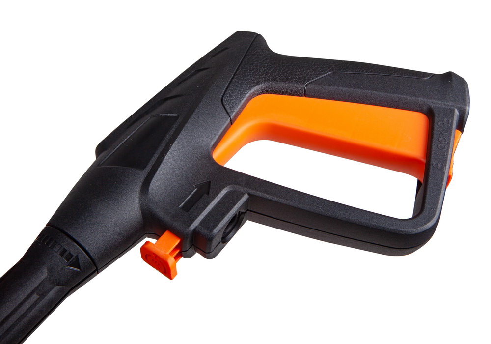 - Дистанционное управление двигателем через пусковую клавишу распылителя повышает комфорт работ, особенно при длительном использовании, сокращает время операций и упрощает процесс мойки.