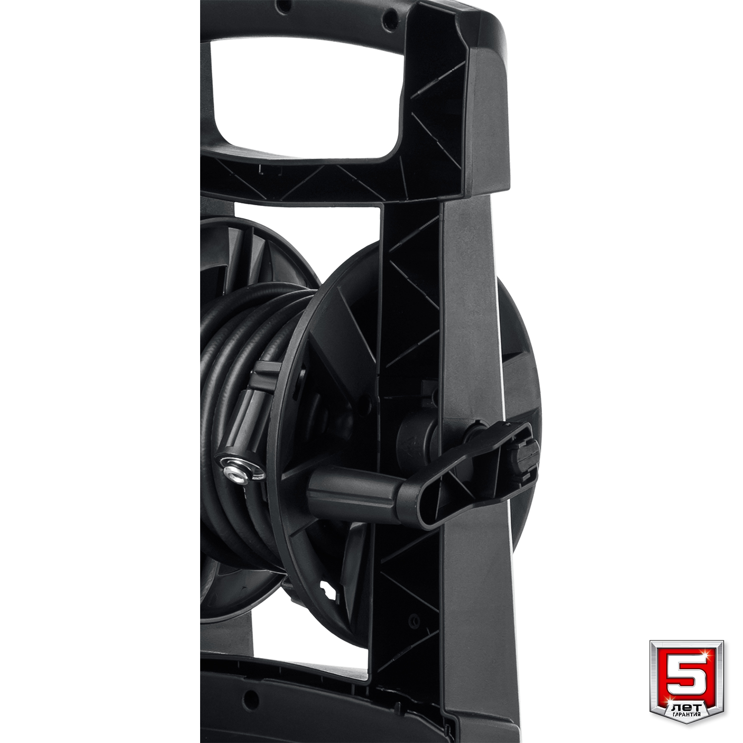 - Шланг длиной 8 м позволяет производить обработку без необходимости перемещать мойку