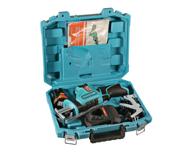 Пила упакована в практичный кейс, который позволяет удобно переносить и надёжно хранить полный комплект инструмента.