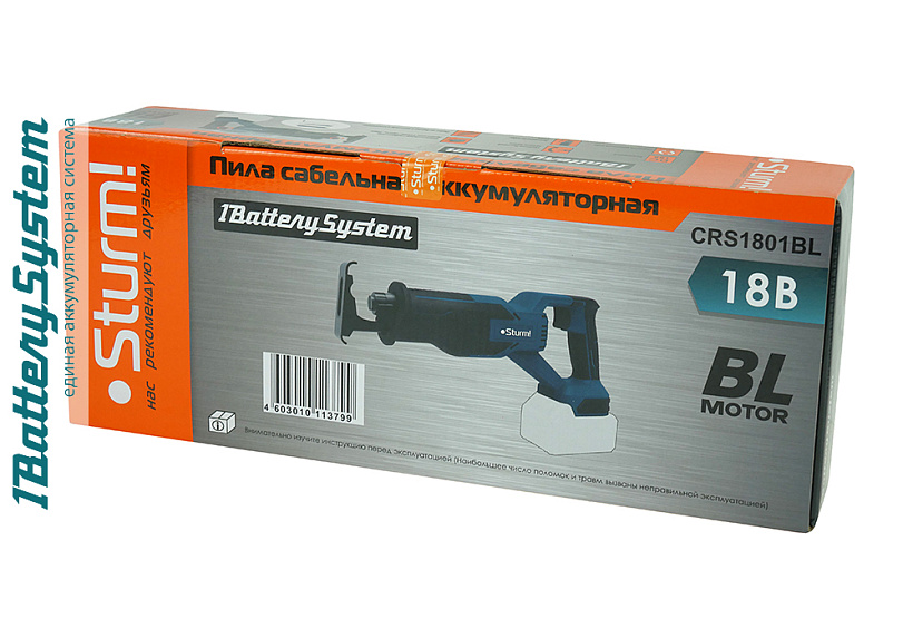 Аккумуляторная сабельная пила является частью системы 1BatterySystem. 1BatterySystem - универсальная аккумуляторная система. Подходит ко всей линейке аккумуляторного инструмента Sturm!