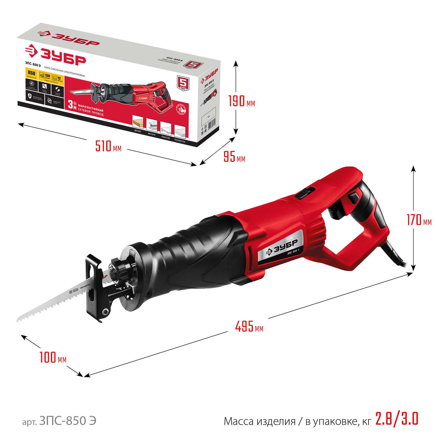 Пила сабельная (электроножовка), ЗУБР ЗПС-850 Э
