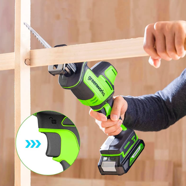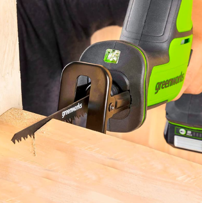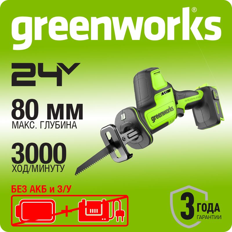 Пила сабельная акк. Greenworks GPT-CRS-25, 24V, б/щет, 0-3000/мин, рез 80 мм дер., LED, без АКБ и ЗУ (1200507)