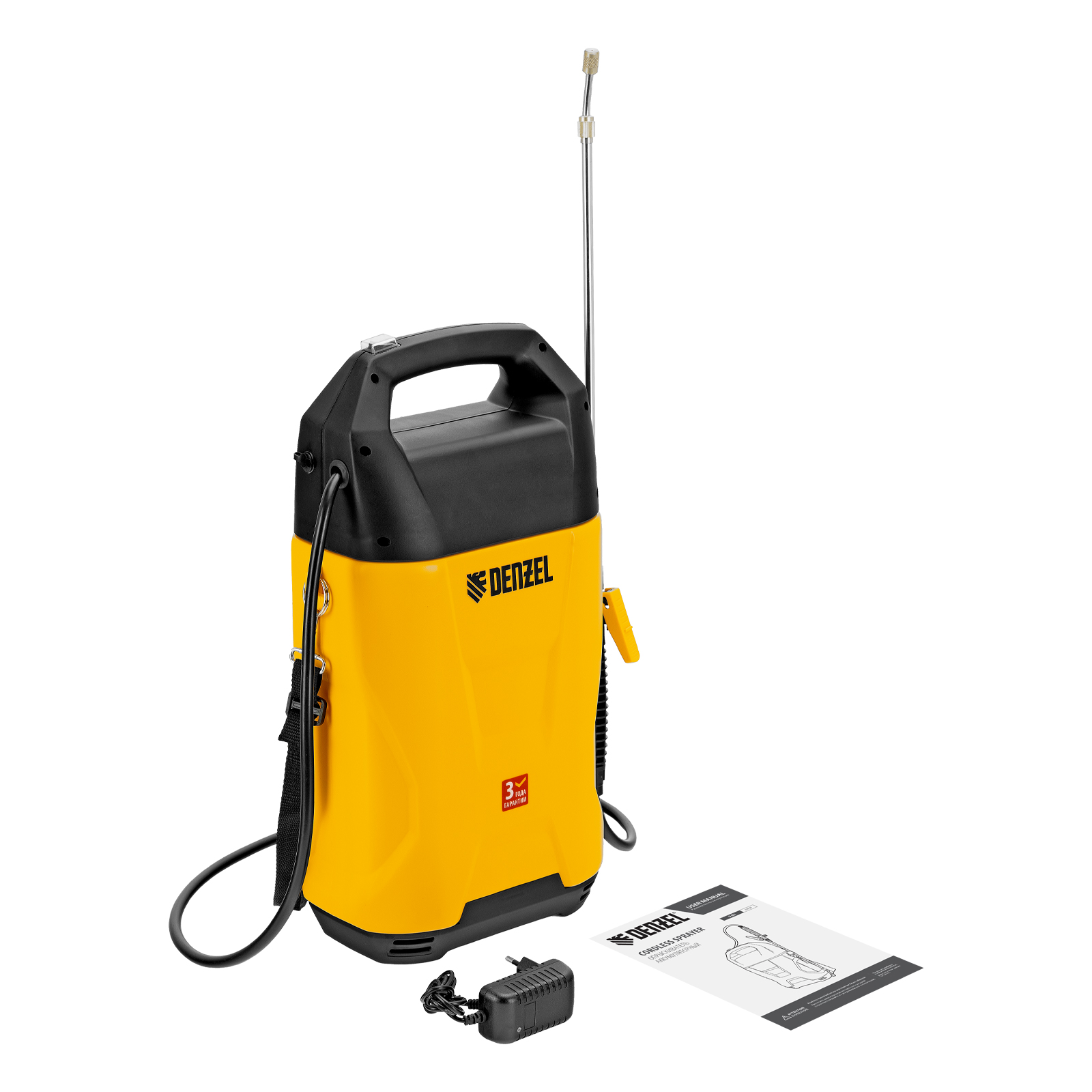 Аккумуляторный опрыскиватель Denzel D-8LI 64795 с баком объемом 8 л и Li-Ion батареей на 12 В, емкостью 2 А·ч, используется для ухода за растениями, а также для распыления инсектицидных жидкостей, дезинфекции помещений, мытья окон, стен и дорожек. Длина штанги регулируется в диапазоне 380-630 мм, а максимальная дальность распыления составляет 4 м, что позволяет обрабатывать участки большой площади и труднодоступные места. Опрыскиватель экономит силы и время пользователя, будет полезен в быту и на производстве.