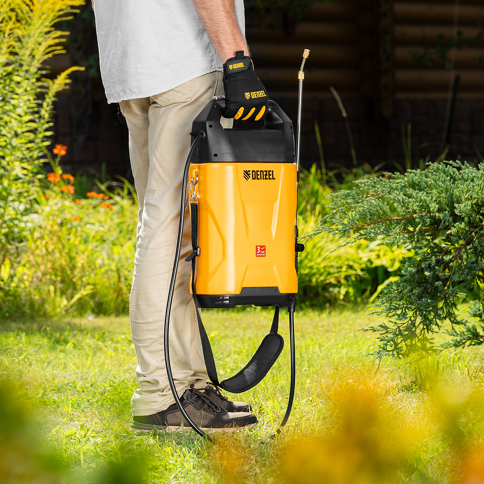- Прочная и долговечная конструкция — корпус бака с ребрами жесткости устойчив к деформации, латунная насадка распылителя не подвержена коррозии.