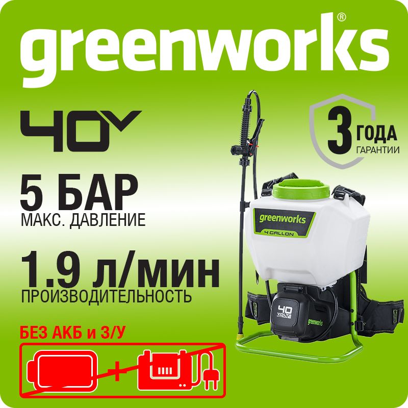 Опрыскиватель аккумуляторный Greenworks G40BPS, 40V, без АКБ и ЗУ (5300007).