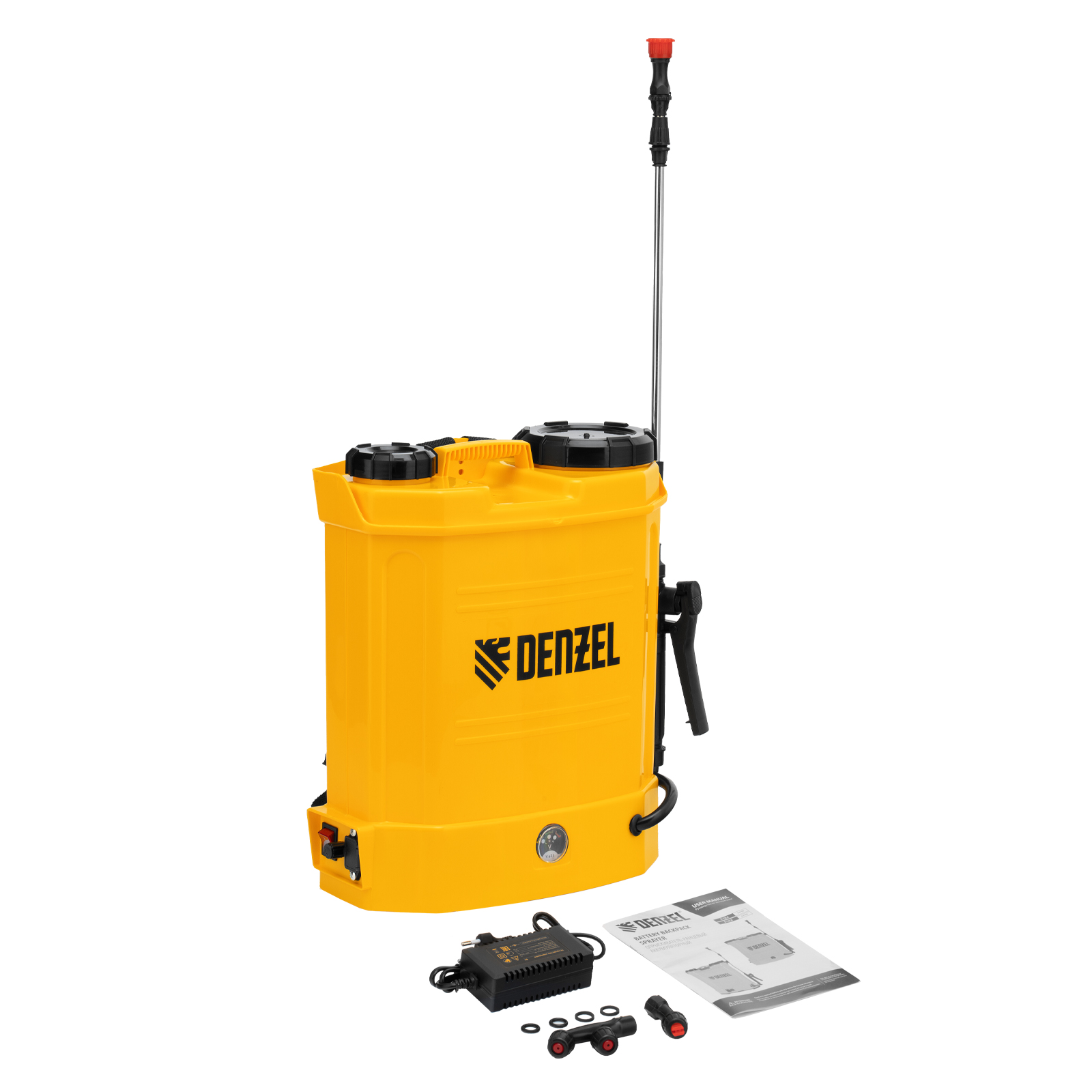 - Зарядное устройство в комплекте — опрыскиватель полностью готов к использованию после покупки.