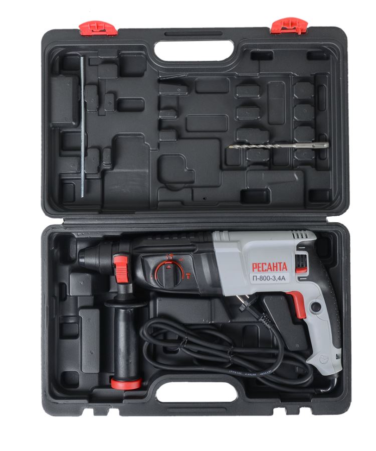 Перфоратор П-800-3,4А имеет все три режима работы: сверление, сверление с ударом и функция удара. Предусмотрена система защиты рабочего механизма от попадания пыли.