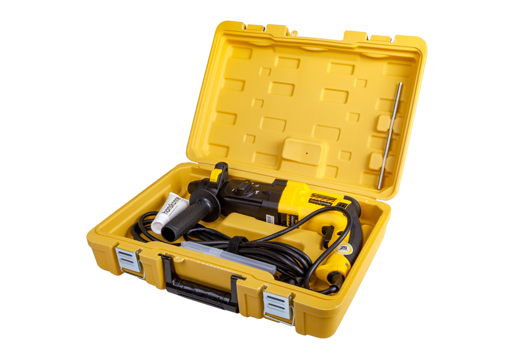 Перфоратор, смазка для хвостовиков буров, ограничитель глубины сверления, дополнительная рукоятка, инструкция по эксплуатации, кейс.