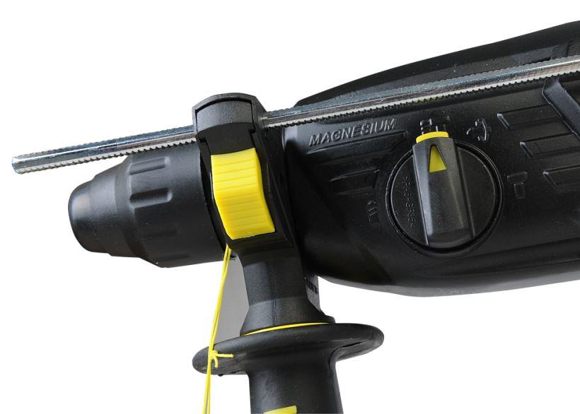 В интересах надежного и быстрого крепления оснастки, модель оснащена быстрозажимным патроном SDS+. Ловкости в обращении с перфоратором благоприятствуют прорезиненные эргономичные рукояти. А ограничитель глубины поможет исполнить отверстия заданной глубины. Безопасному ходу эксплуатации способствует встроенная предохранительная муфта SafetyClutch, активная при заедании или защемлении оснастки, что предотвращает внезапный резкий поворот инструмента в руках оператора.