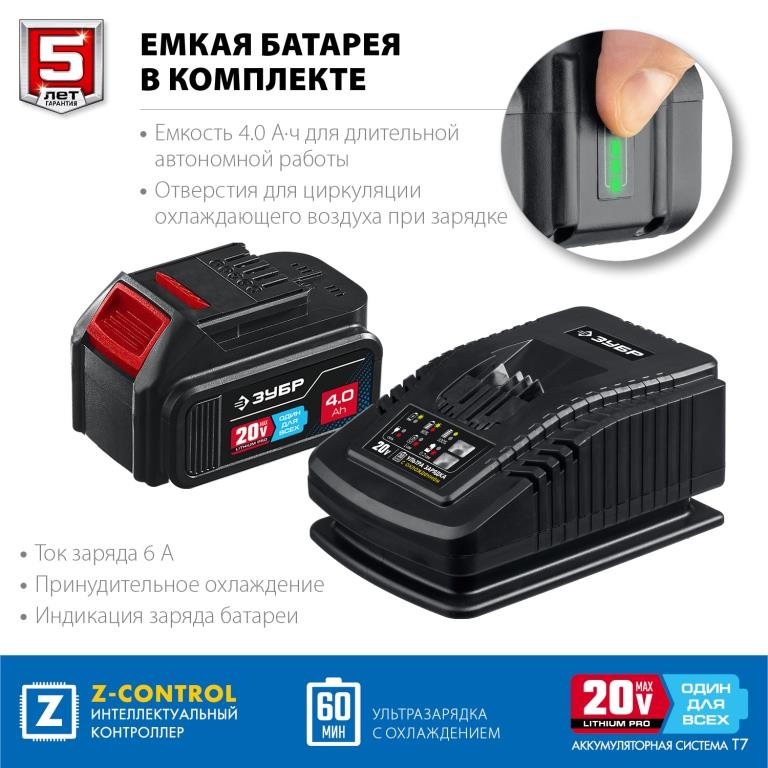 - Две батареи большой емкости 4Ач в комплекте для безостановочной работы