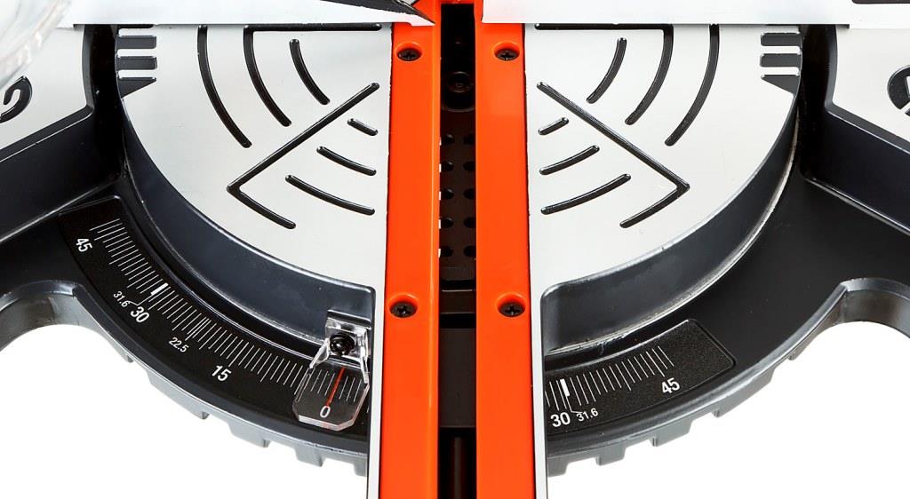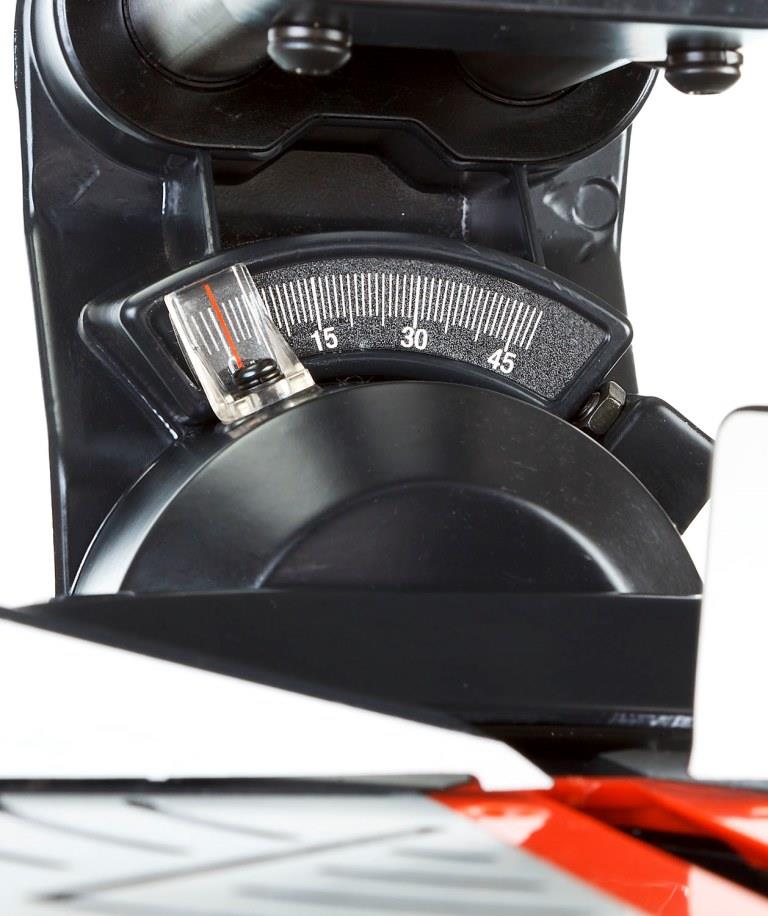 - - Фиксирующийся в любом положении поворотный стол и удобная регулировка наклона облегчают установку угла пилен
