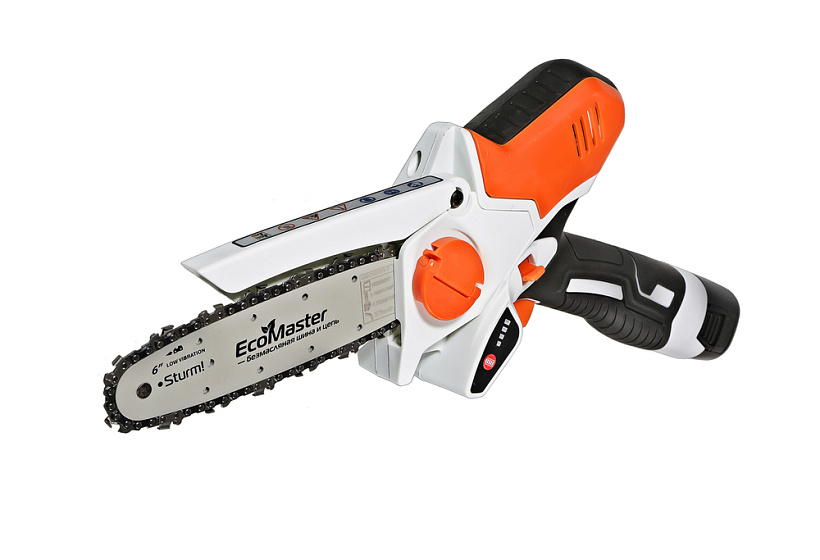 Аккумуляторная цепная пила Sturm! CSC18061 прекрасно справится с обрезкой веток деревьев и простыми столярными работами.