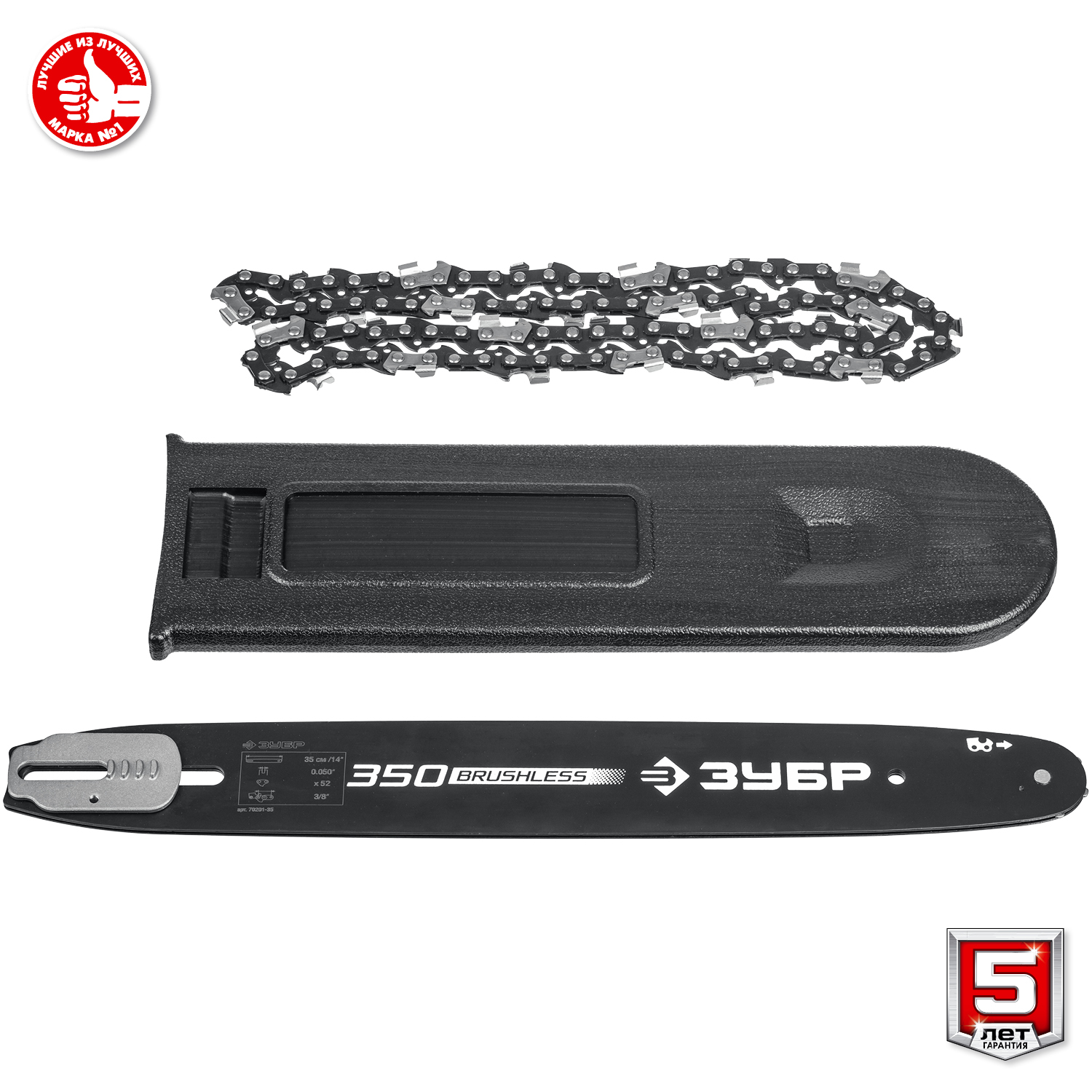 - Мощный двигатель напряжением 36 В ускоряет процесс пиления, а шина длиной 350 мм позволяет справляться с большинством веток