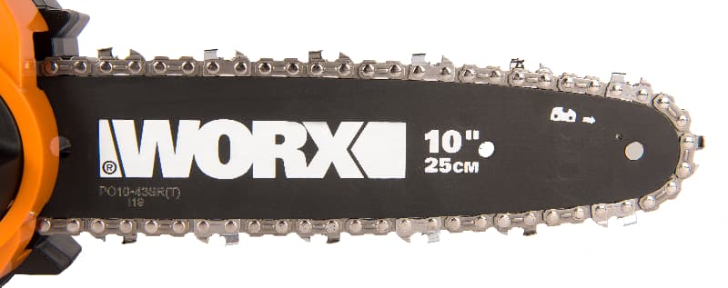 Цепная пила WORX WG322E 20V работает от одного аккумулятора PowerShare 20V. Скорость цепи — 3,8 м/с. Предусмотрен инерционный тормоз — в случае отскока пилы, двигатель глушится: защита оператора и окружающих людей. Прозрачный масляный бак (130 мл) позволяет отслеживать уровень масла, в пиле предусмотрена автоматическая смазка цепи, а также самонатяжение цепи лёгким движением руки без дополнительных инструментов. Длина пильной шины 25 см, шаг цепи — 9 мм. Вес модели — 2,8 кг.